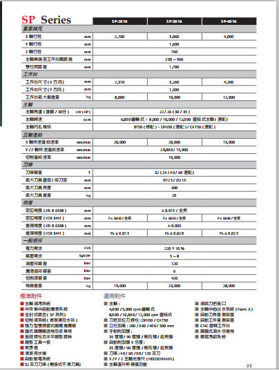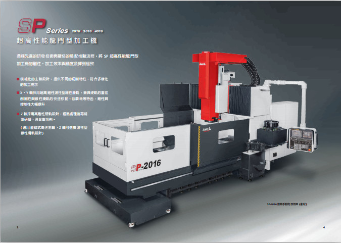 亞崴 SP 系列龙门加工中心,高品质高配置高精度,大馬力、高剛性結構,結合高品質、自動化等周邊配備與完整的系列規格尺寸,提供您高效能、高生產力的加工對策;廣為全球知名汽車工業、精密模具工業、航太工業與能源工業等加工大廠所採用