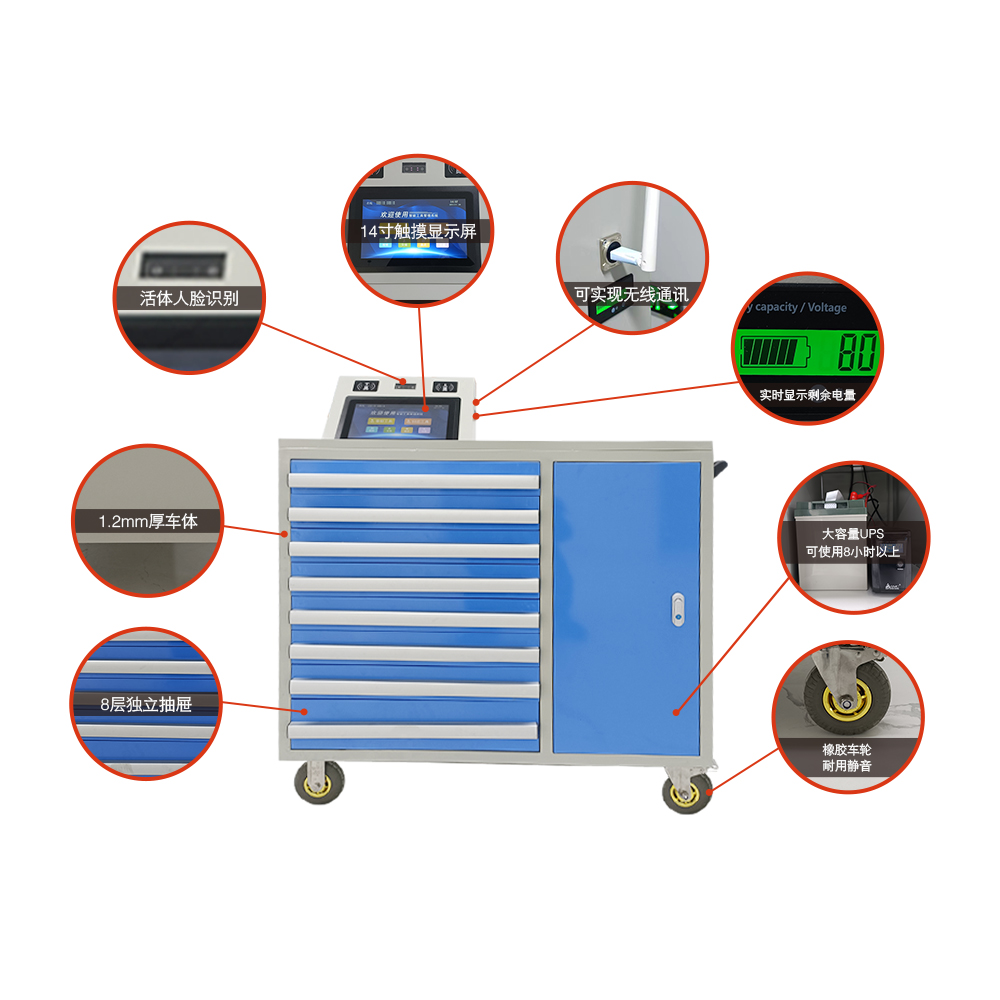 *高强度不锈钢柜体,提供紧急应急方案:应对特殊情况,可以实现机械钥匙开抽屉,手动取出工具;