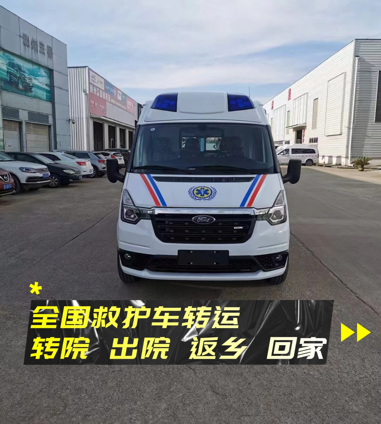 【公司介绍】医疗救护车服务有限公司,是一家正规的救护转送服务机构,公司业务范围:伤病员往返接送服服务、出院服务,转院服务,返乡服务、帮抬服务、送病人救护车回老家、跨省救护转院、长短途救护车出租、危重病人长途转运、航空专机转运、重症监护型救护、长途跨省救护、病患转院、高铁转运、火车站转送、会议、比赛、影视拍摄、大型展会活动等。配备随车人员以及各种专用设备仪器,呼吸机,吸痰器,心电监护仪,微量注射泵推拉担架车等。