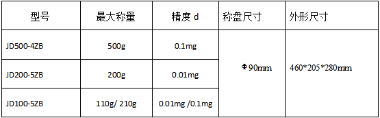 型号TJD500-4ZB 量程500g 精度0.1mg 秤盘尺寸&90mm 外形尺寸 460x205x280mm