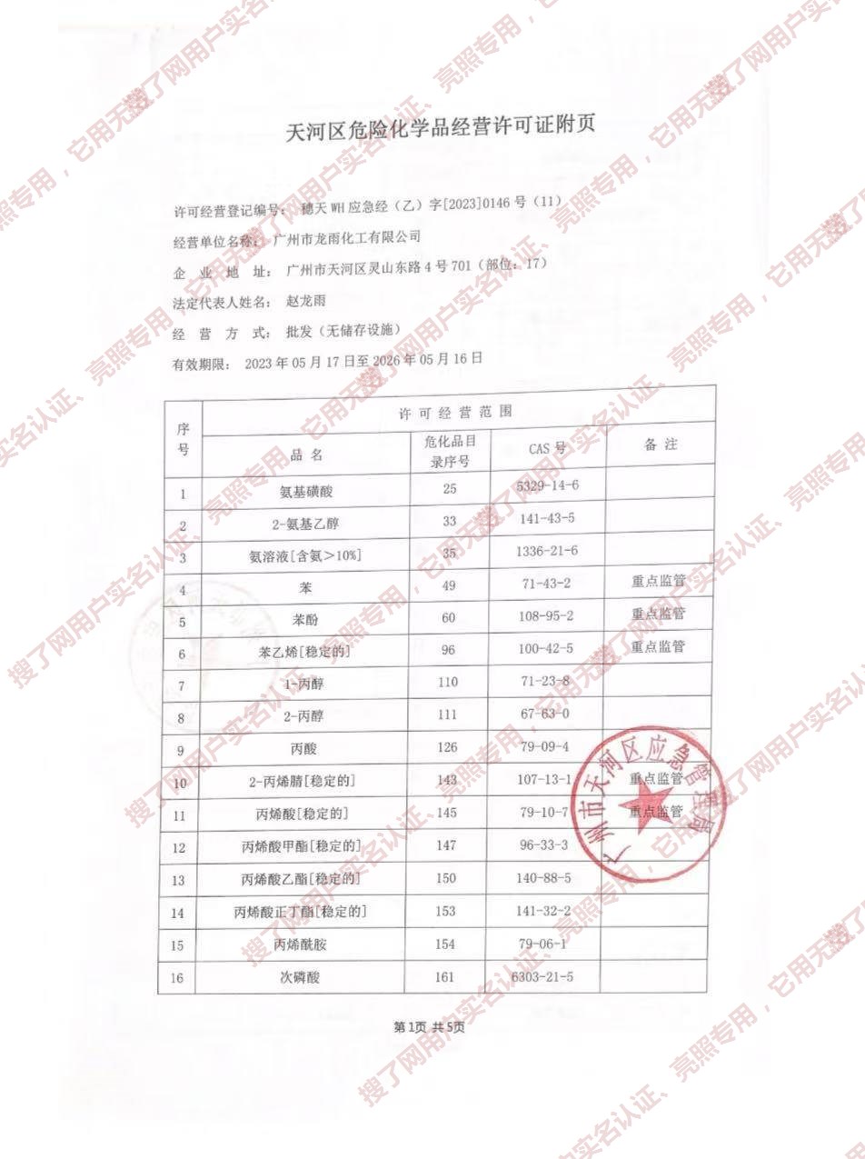 日用洗涤剂原料、水处理化工原料、电镀化工原料、农业化工原料