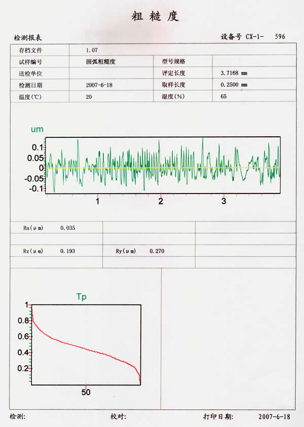 此款仪器已可同国外进口仪器性能相比,各方面指标已达到国际标准,仪器符合国家标准GB/T3505-2000, GB/T6062-2001, GB/T10610-1998,以及国际标准ISO5436, ISO11562,ISO4287的要求。仪器采用天然金刚石触针及硬制合金斧形触针(可互换),电感式触头及高精度传感器,智能化程度高,测量精度高,稳定性重复性好,外形美观,打印输出使用方便,可测量各种精密机械零件的粗糙度和轮廓形状参数。用拟合法可评定半径、角度处理,圆处理,点线处理,两圆中心距角度、距离等。从而可测量直线度、凸度、沟心距、倾斜度、槽深,槽宽,沟边距,沟心距垂直距离、水平距离、台阶等形状参数。并可为用户测量特殊工件而开发并为客户量身定制设计用的软件。