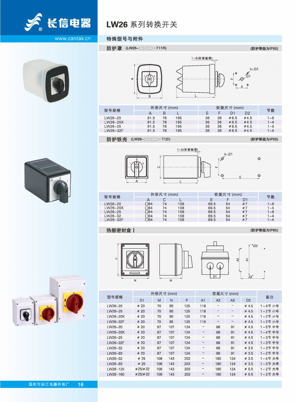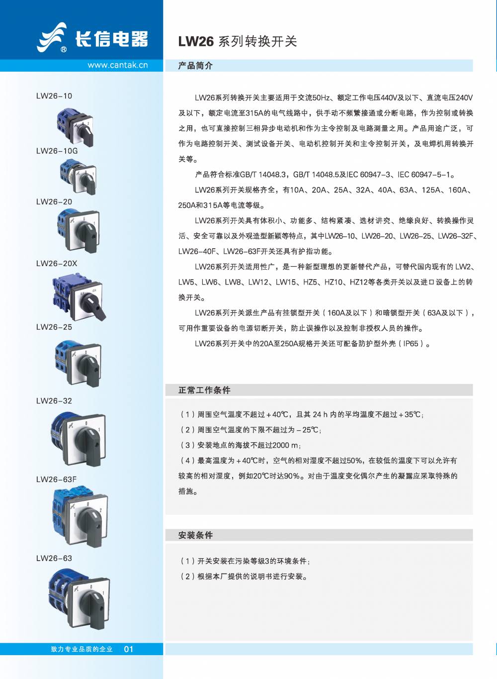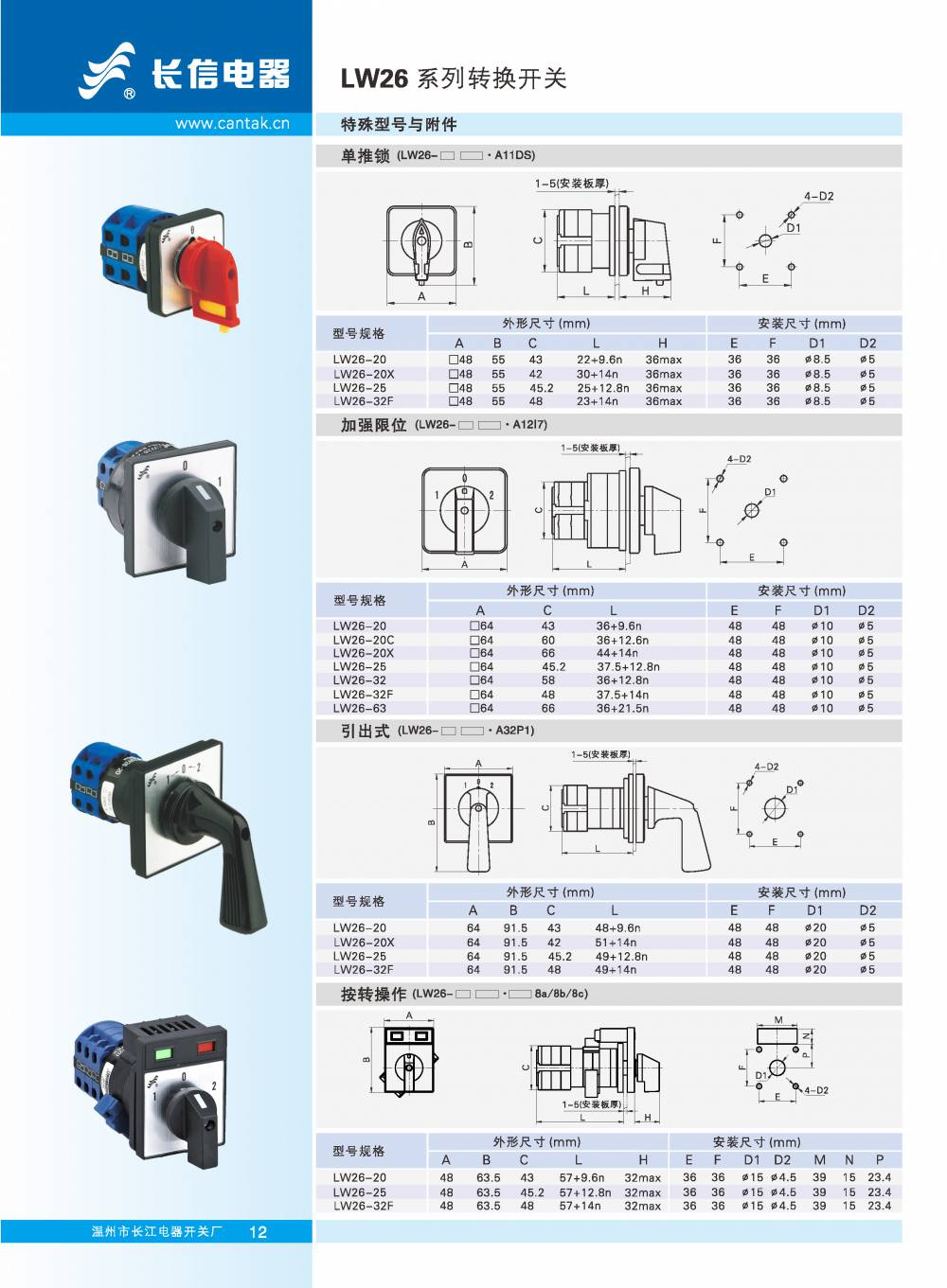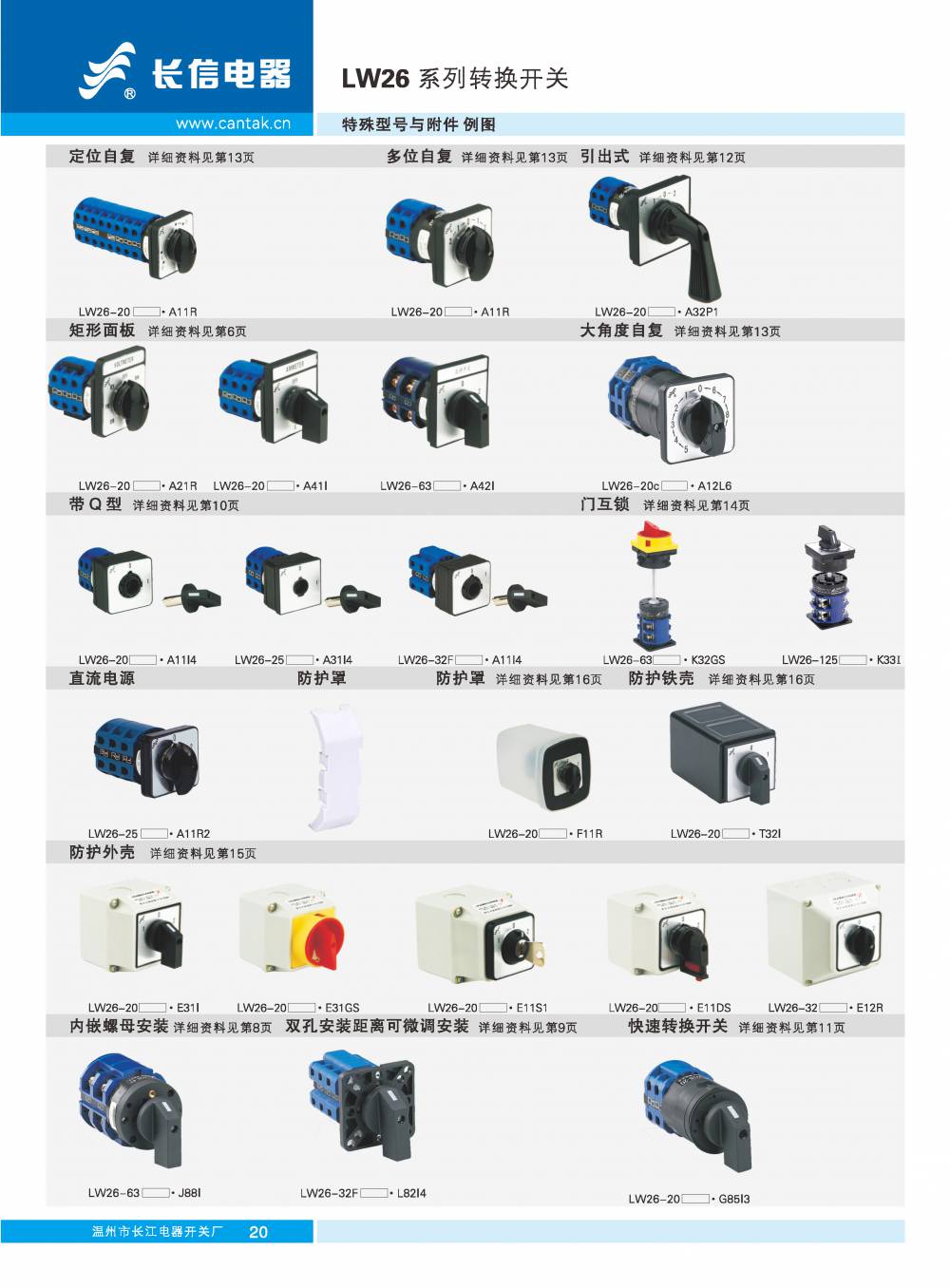 长信电器 LW26-20系列转换开关 ,LW26-20 C0071/1,LW26-20 D0081/1,LW26-20 D0401/2,LW26-20 D0414/2,LW26-20 D0724/3,LW26-20 D0723/3,LW26-20D1050/4,LW26-20YH2/2,LW26-20YH3/3,LW26-20YH5/3,LW26-20LH3/3,LW26-20 4.7206.6,LW26-20 D0083/1,