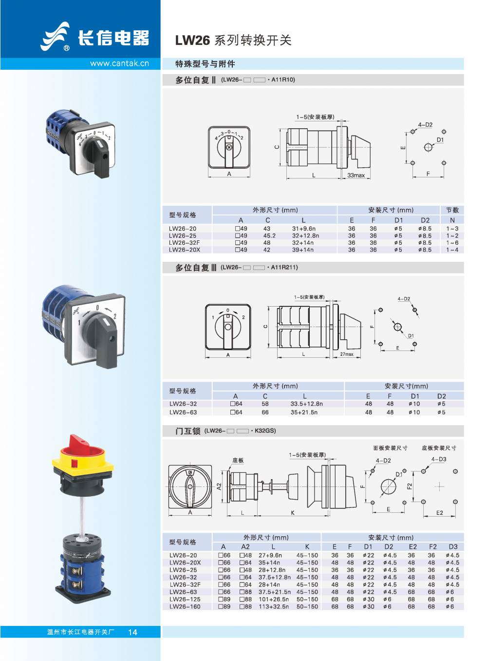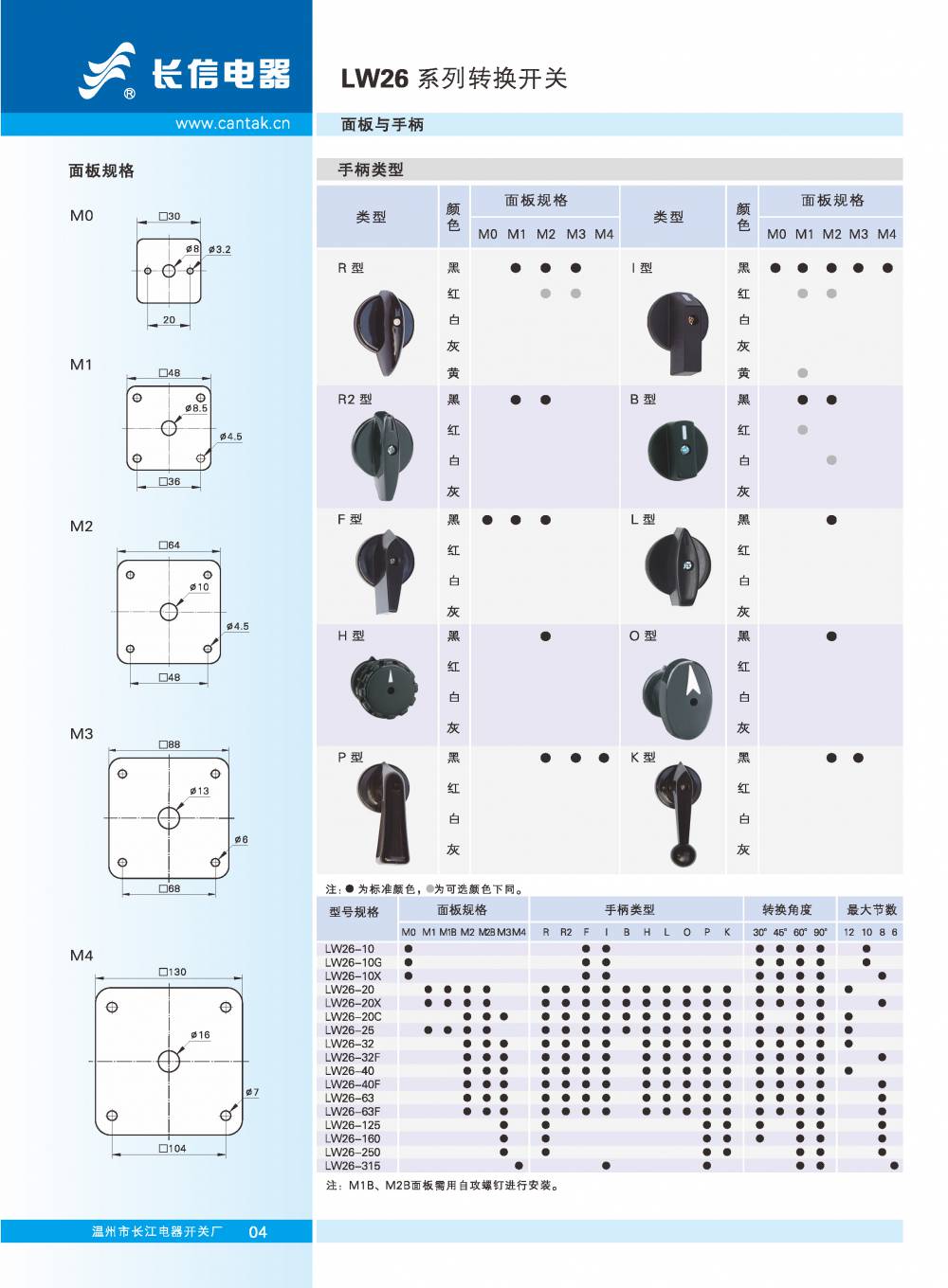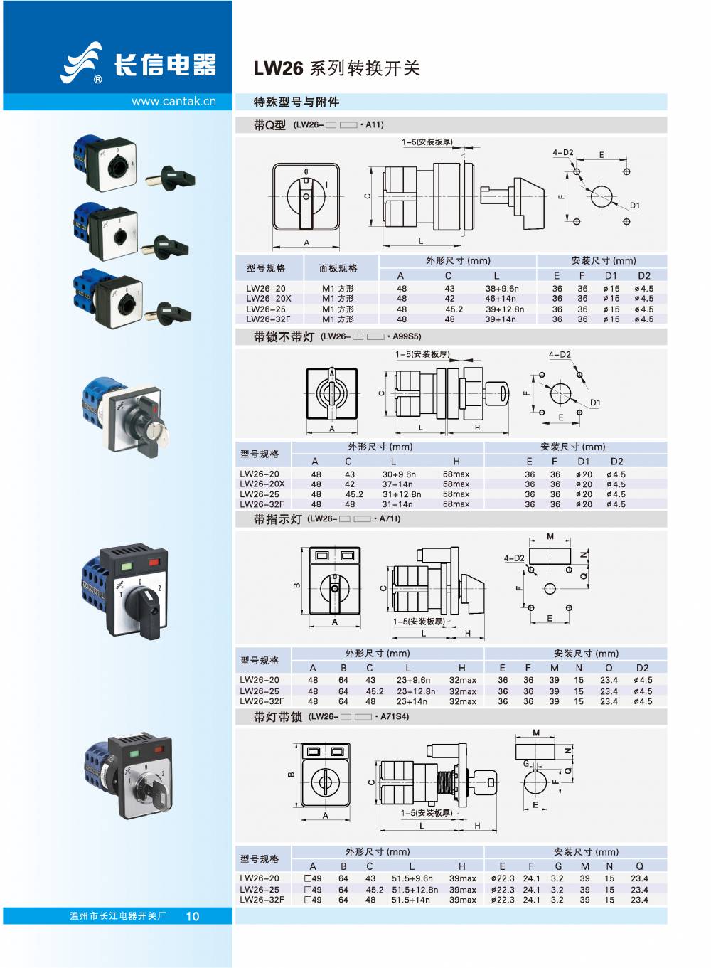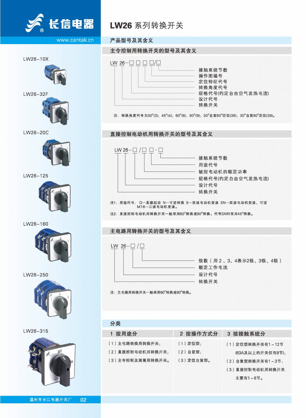 长信电器 LW26-20系列转换开关 ,LW26-20 C0071/1,LW26-20 D0081/1,LW26-20 D0401/2,LW26-20 D0414/2,LW26-20 D0724/3,LW26-20 D0723/3,LW26-20D1050/4,LW26-20YH2/2,LW26-20YH3/3,LW26-20YH5/3,LW26-20LH3/3,LW26-20 4.7206.6,LW26-20 D0083/1,