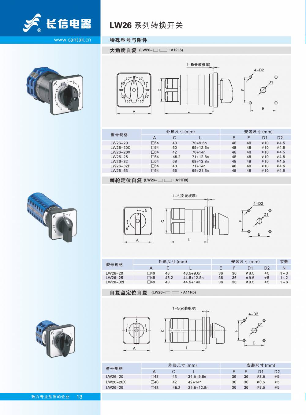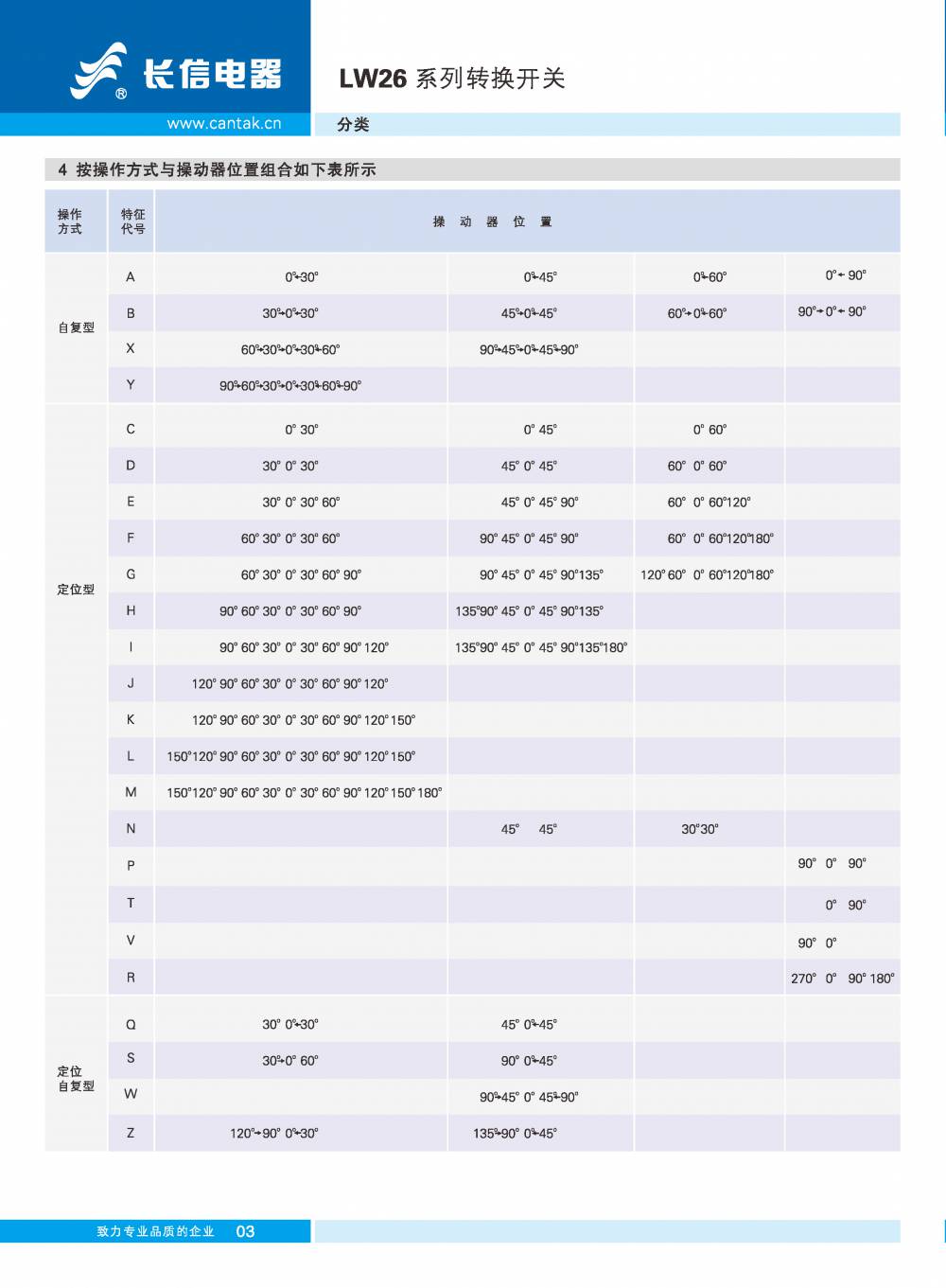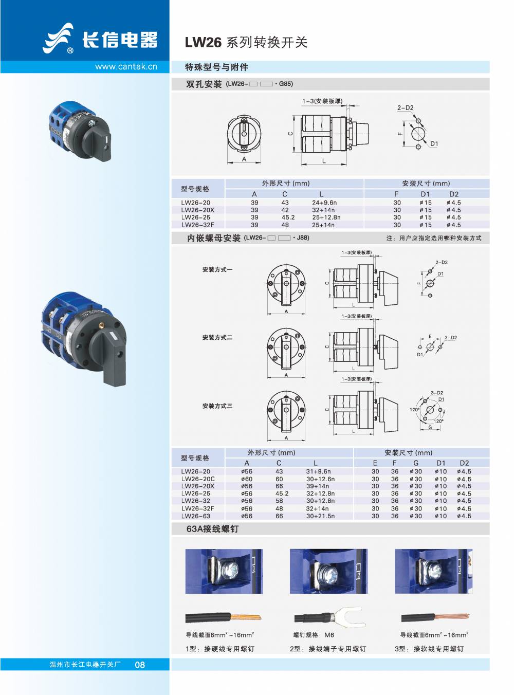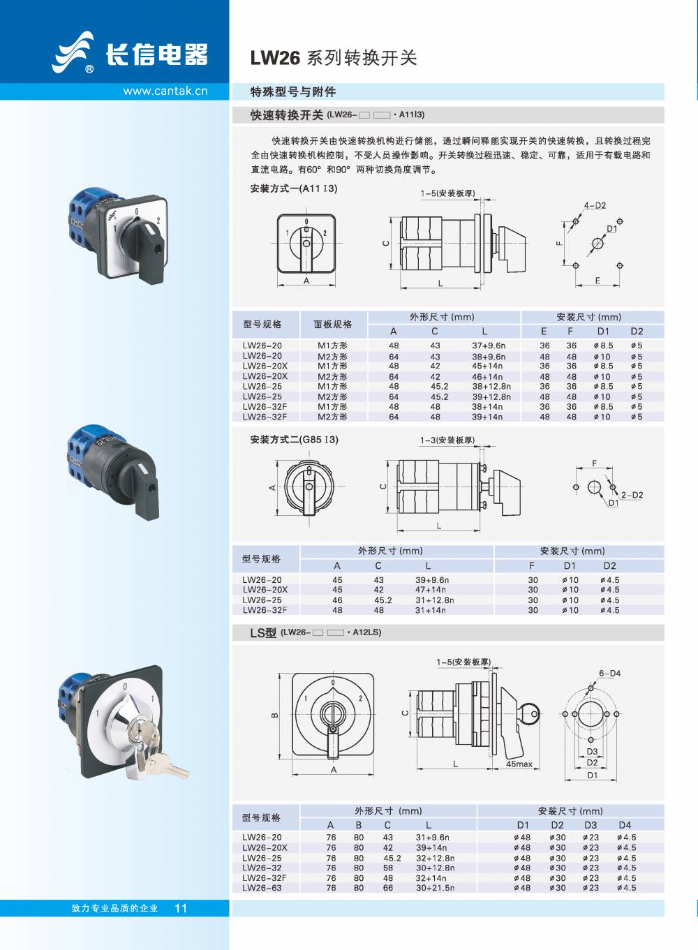 长信电器 LW26-20系列转换开关 ,LW26-20 C0071/1,LW26-20 D0081/1,LW26-20 D0401/2,LW26-20 D0414/2,LW26-20 D0724/3,LW26-20 D0723/3,LW26-20D1050/4,LW26-20YH2/2,LW26-20YH3/3,LW26-20YH5/3,LW26-20LH3/3,LW26-20 4.7206.6,LW26-20 D0083/1,