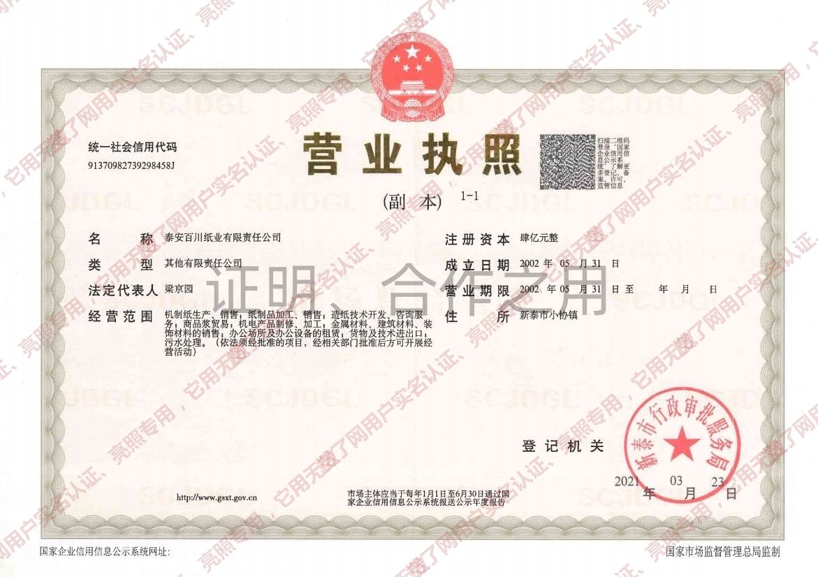 泰安市百川纸业有限责任公司