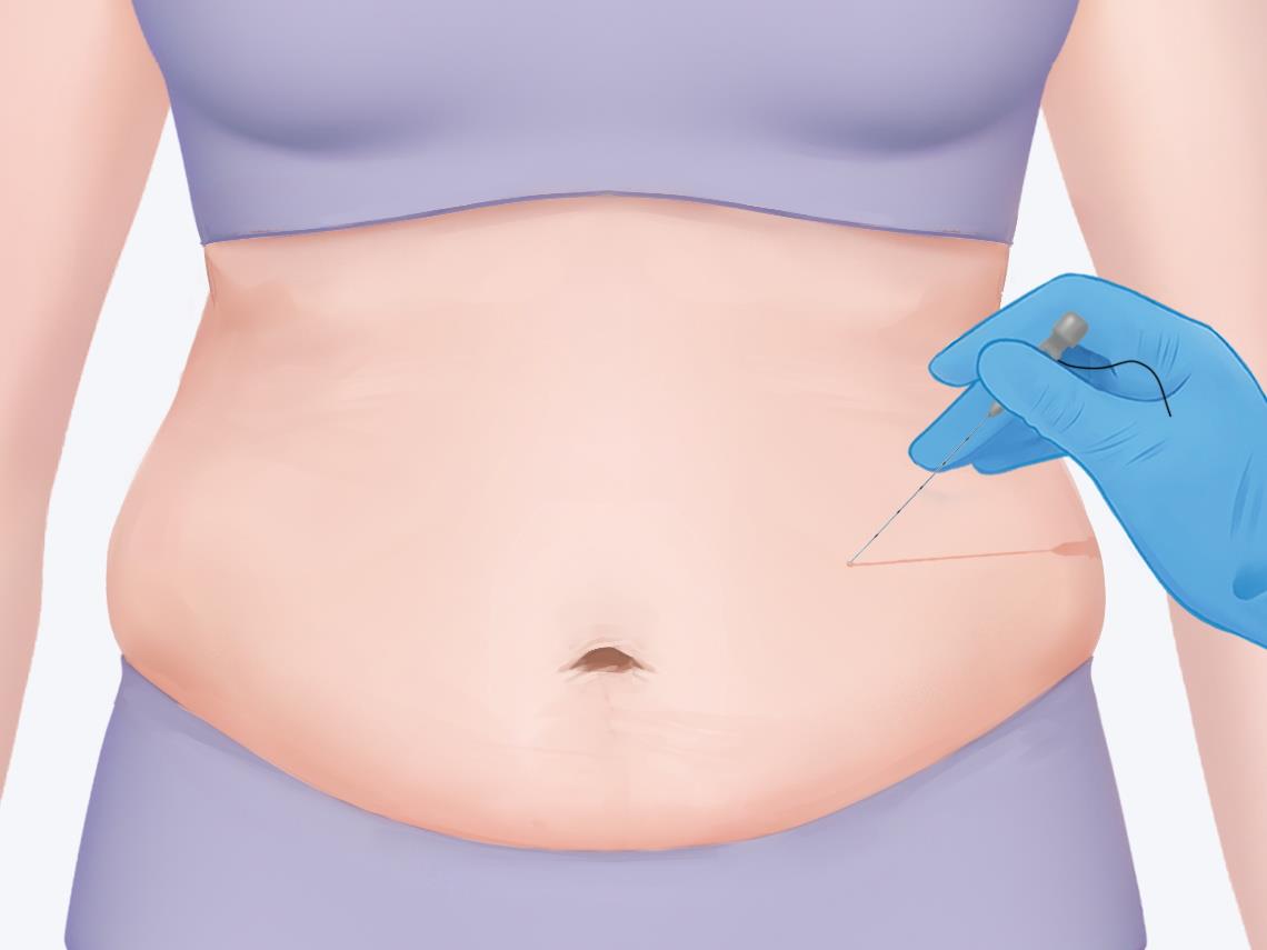 穴位埋线减肥是根据患者的个体差异、不同症状和肥胖机制,进行合理有效的辨证选穴,在相应穴位埋入蛋白质磁化线(以线代针),起到“健脾益气、疏通经络、调和阴阳气血”的作用,从而调整患者的植物神经和内分泌功能1。