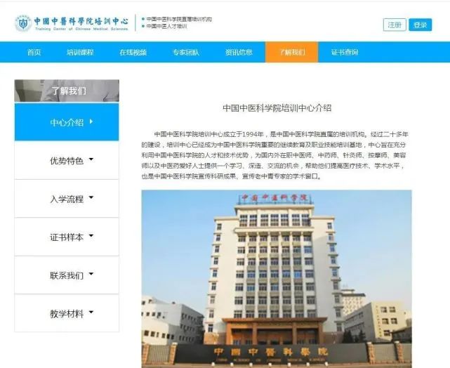 首先,我们通过中国中医科学院培训中心的站可以发现该中心的“了解我们”中介绍到,中国中医科学院培训中心成立于1994年。