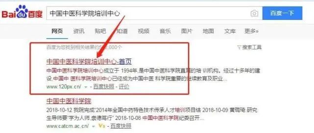步:百度搜索:中国中医科学院培训中心
