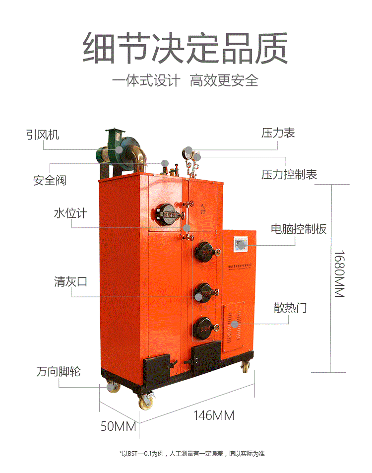 *锅炉外包装采用名优彩板包裹设计,外形美观大方,不易锈蚀。
