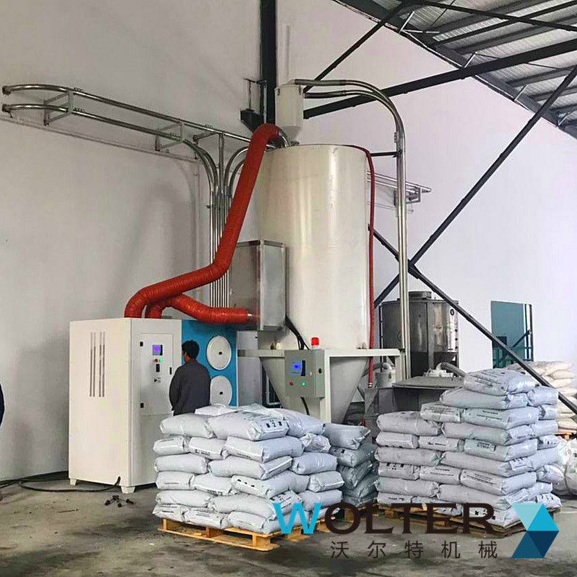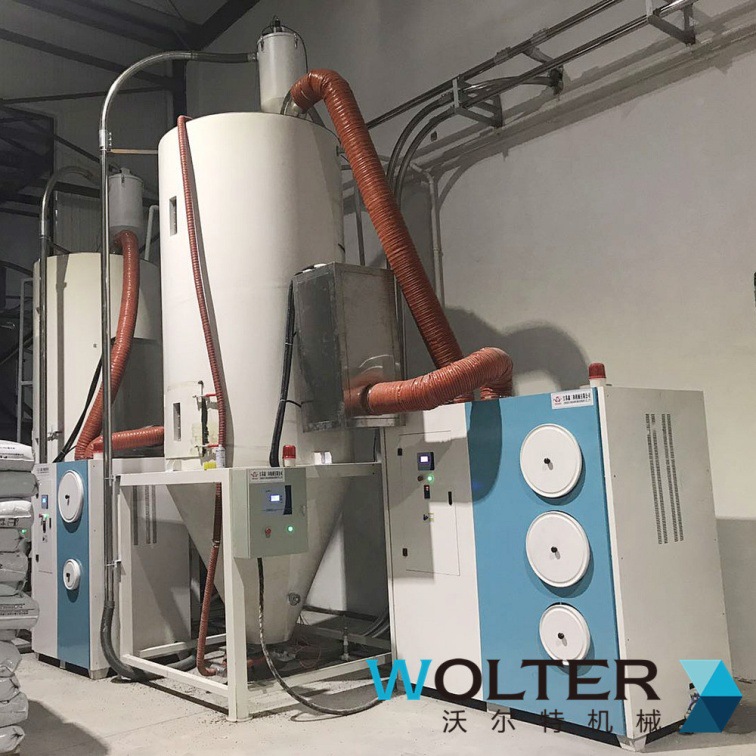 沃尔特公司专门研发了集中高效除湿干燥解决方案【Desert-plus】系列,设计出完全处于密闭循环状态的管路,不会接触到外界空气中的水分,同时分子筛和封闭的再生技术将管路中的干燥空气露点温度降低至-45℃--60℃(露点是空气中的水蒸气变为露珠时候的温度),低露点空气不仅可以塑料表面的水分得以蒸发并带走,而且还能去除塑料分子内部的结晶水,达到快速降低原料内部含水量的目的。