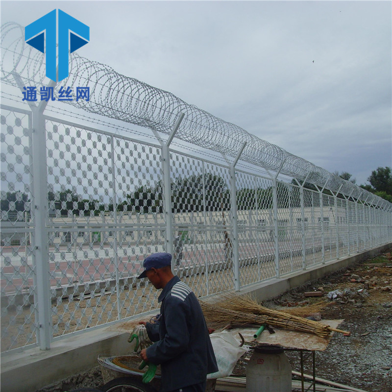 机场围栏网是安全防盗连接件和热镀锌刀片刺笼组成是强度和安全防御性级别很高的隔离栅产品。