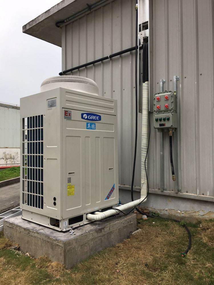 | 产品详情 型号 :BKFR-28F 匹数:10匹 功能:冷暖/单冷 制冷量:25KW 制热量:28KW 额定电压:380v 额定频率:50Hz 制冷额定功率:8.7KW 制热额定频率:7.2KW 大输入功率:14.28KW 噪音:66(db)A 防水等级:IPX4 室内机尺寸(宽高深cm):99X88X177.2 此空调有多种型号,若非标可根据客户要求定制。欢迎来电洽谈!适用范围: 1.本产品适用于石油化工、冶金、医药、纺织、食品、生物工程、制药、仓库、航天航空工程及等爆炸性环境中,有温度控制要求的场所; 2.1区、2区危险气体场所 3.IIA、IIB、IIC类T1-T4组爆炸性气体或蒸汽环境; 4.环境温度:-5℃~+43℃。