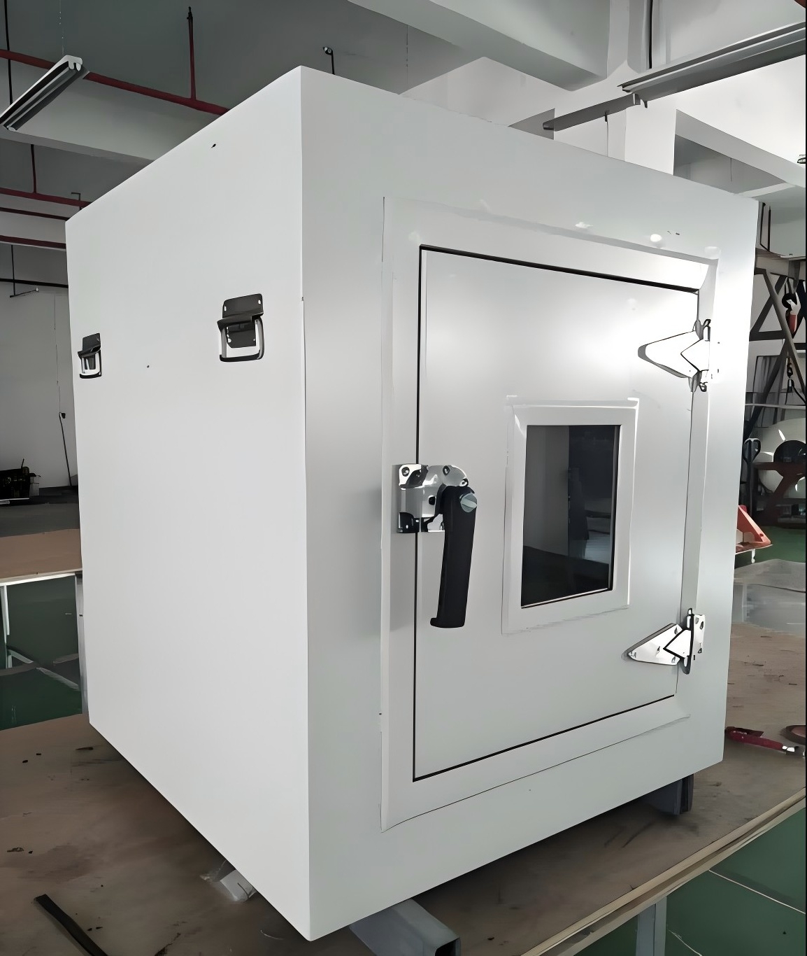 隔音箱/振动盘隔音箱外壳体采用2.0mm冷轧钢板焊接而成,静电喷涂烤漆工艺,双层壳体双层隔音门,内粘贴海绵吸音尖劈,隔音箱隔音效果25dB(A)-50dB(A)。