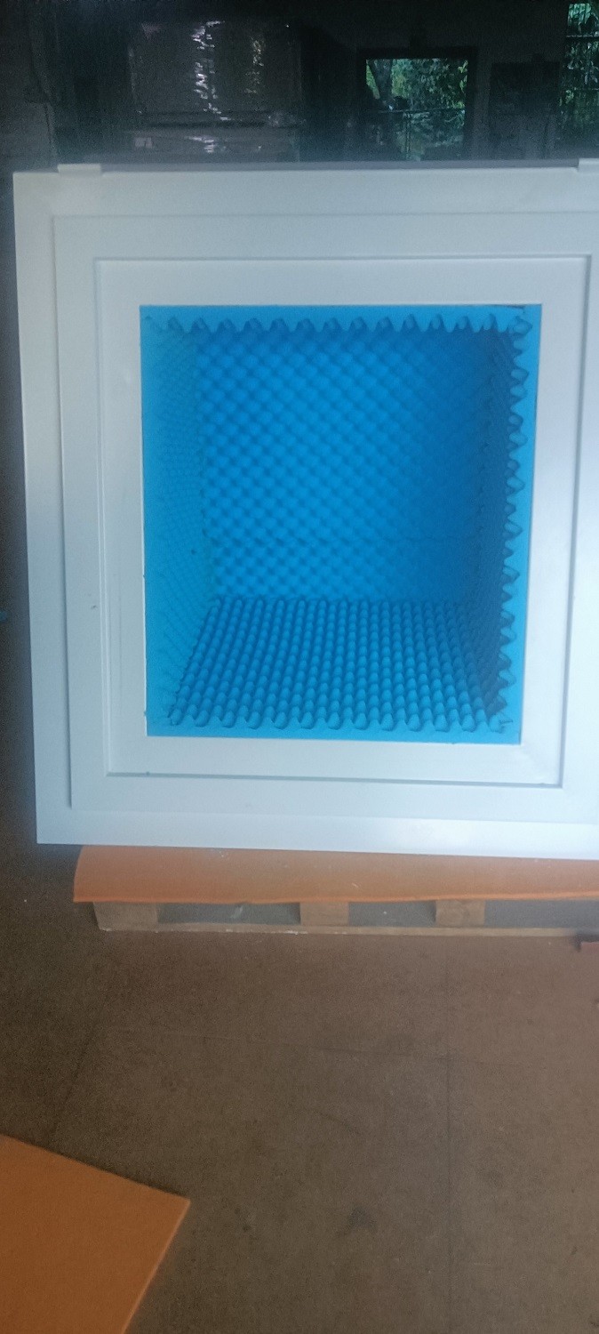隔音箱适用于各类小型设备的隔音效果检测,箱体内放有发声装置以及噪音分贝计探头,可通过面板中的按钮调节音量大小,当音量调到较高音量时,音量变化可通过比较箱内箱外的分贝显示值来评判窗户的隔音效果。通过对室内室外噪音的对比,观察者可以直观的体验窗户的隔音效果。