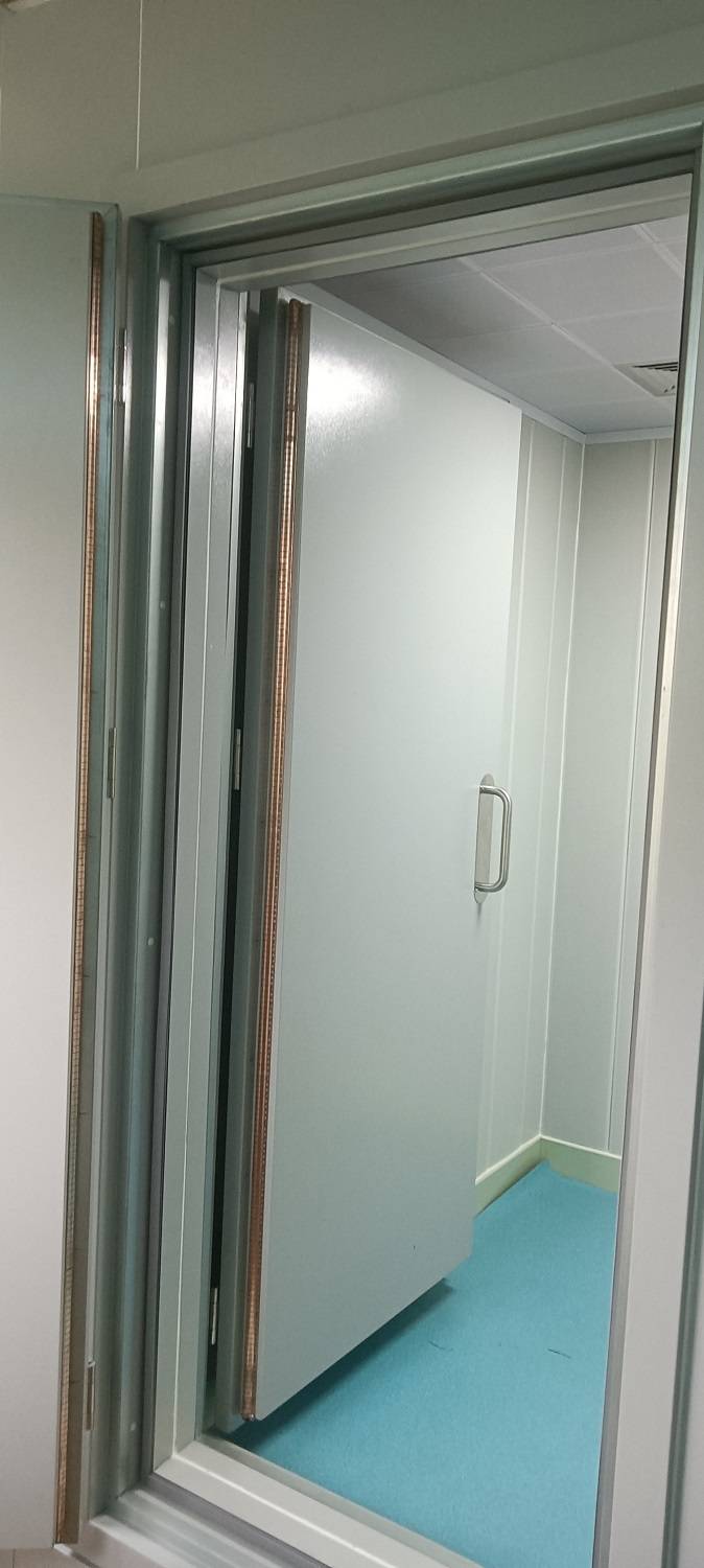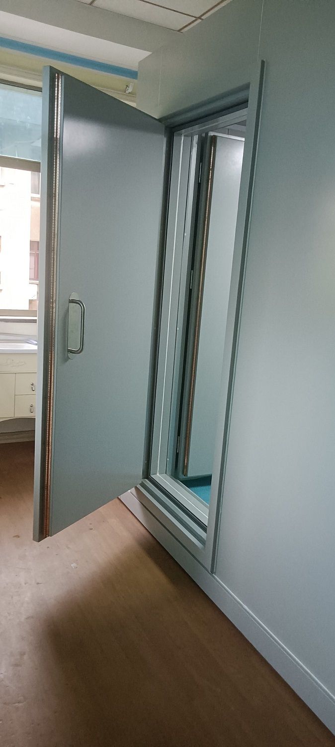2、组装式屏蔽室:有六面墙体、龙骨隐藏在墙体里面并与地面之间做绝缘处理。六面墙体是由厚度为1.5mm-2mm的镀锌钢板制成单元模块组装而成。