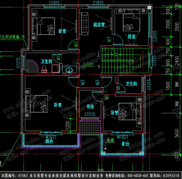 本套图纸有施工图55张,效果图4张,包打印(效果图为A4彩图,施工图为A3大图),全国快递包邮,支持货到付款,不提供电子版图纸属性 图纸编号: AT083 层数: 三层 结构形式: 砖混结构 主体造价: 30-38万 主体开间: 11.1 进深: 12.9米 占地面积: 128.8平方米建筑面积: 354.78平方米 图纸内容 建筑 图: 建筑设计说明、工程做法表、地层平面图、二层平面图、三层平面图、屋顶平面图、正立面图、背立面图、左立面图、右立面图、1-1剖面图、楼梯大样图、节点详图、门窗表及门窗大样图;结构 图: 基础平面布置图、基础大样图、一层柱位平面布置图、二层柱位平面布置图、三层柱位平面布置图、一层梁结构平面图、二层梁结构平面图、三层梁结构平面图、屋面层梁结构平面图、二层板结构平面图、三层板结构平面图、屋面板结构平面图、楼梯大样图、节点配筋详图;给排水图:给排水设计说明、一层给排水平面图、二层给排水平面图、三层给排水平面图电气 图: 电气系统图、设备材料表、一层照明平面图、二层照明平面图、三层照明平面图、一层插座平面图、二层插座平面图、三层插座平面图、一层弱电平面图、二层弱电平面图、三层弱电平面图设计功能 一 层: 客厅,长辈房,餐厅,厨房,卫生间,车库,过厅二 层: 主卧窒(附卫生间及书房)、卧窒3间,公卫生间,起居室三 层: 卧室,活动室,卫生间,储藏室,露台户型图展示首层户型图: