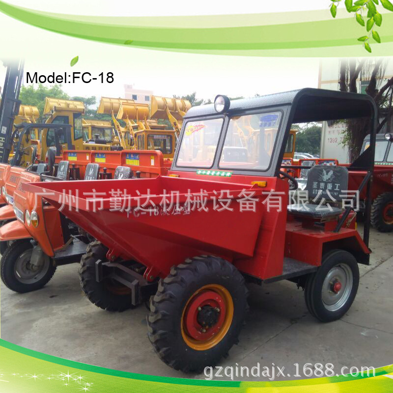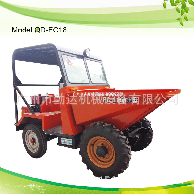 FC-18工程液压前翻斗车匹配了18型电启动柴油机,前轮匹配了大花750-16工程轮胎,后轮匹配了450-14轮胎,转向系统由方向盘控制方向机转动后轮转向。前翻斗采用了加厚钢板,并且较以前做了加高处理。翻斗车液压系统:1.8T液压翻斗车,18马力发动机