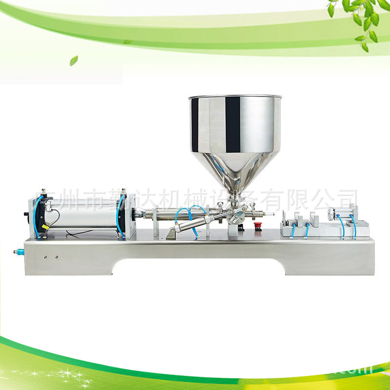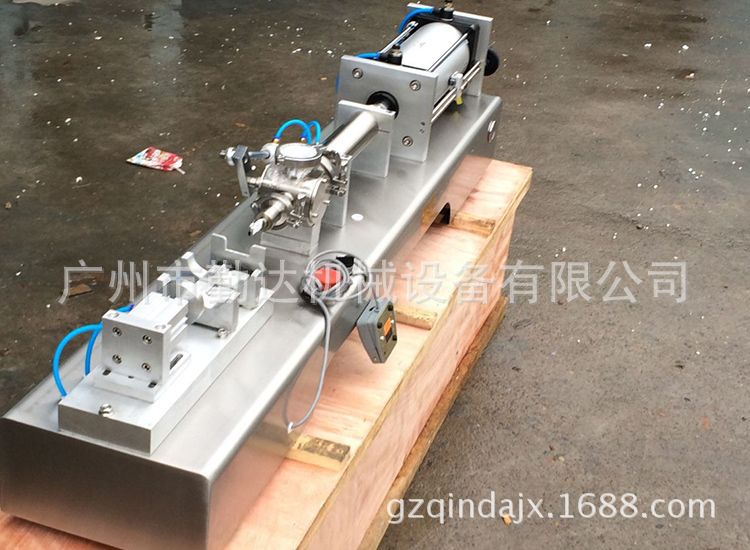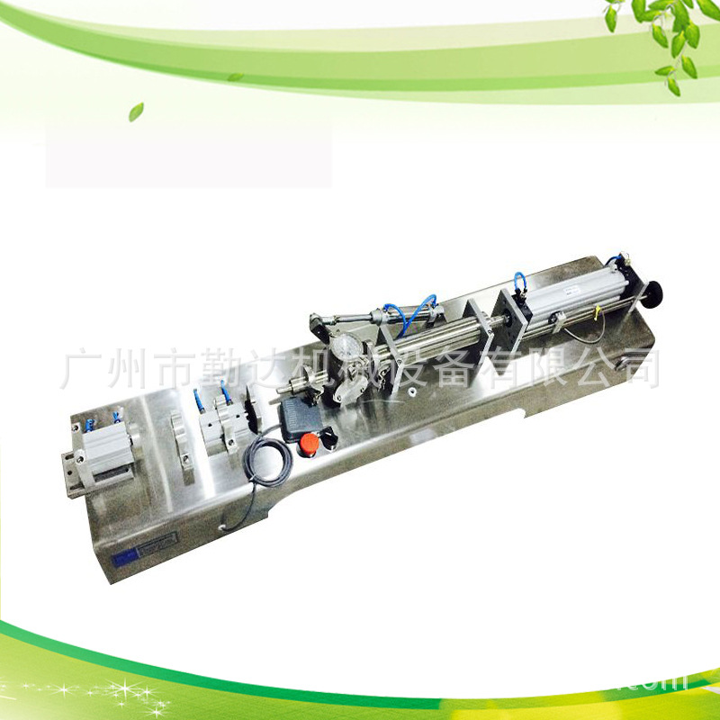 美缝胶灌装机,双组份美缝剂单组美缝剂灌装机。通过气缸带动一个活塞来抽取和打出物料,用单向阀控制物料流向,并以磁簧开关控制气缸的行程,即可调节灌装量。该灌装机设计合理,机型小巧,操作方便,气动部分均采用台湾品牌的气动元件。物料接触部分均采用304#不锈钢材料制成,符合GMP要求。