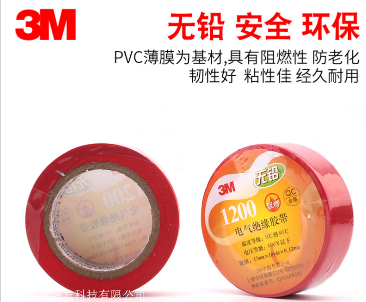 3M1200无铅电工绝缘胶带是一种性能优良、经济实用的聚氯乙烯绝缘胶带。它具有良好的耐磨性、防潮性、耐酸碱性及抗环境变化能力(包括紫外线)。具有红、黄、绿、蓝、白、黑六种颜色可供选择