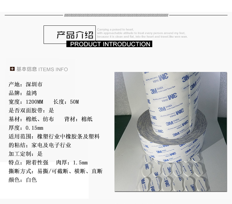 3M9448A双面胶强力棉纸双面 蓝字彩盒铭板双面胶 无纺布双面胶
