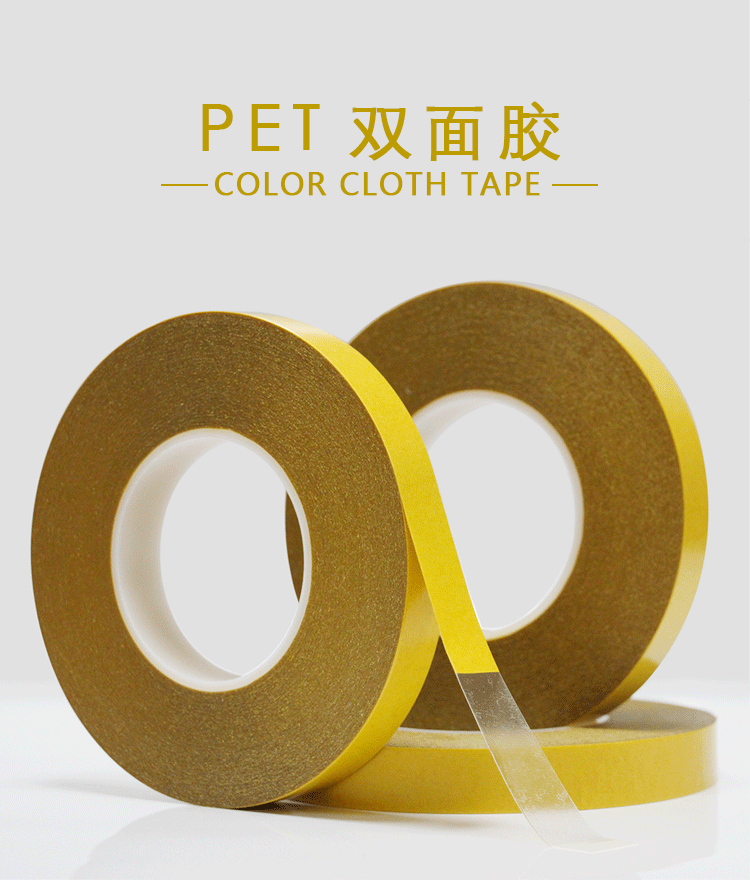 PET双面胶一般为透明和黑色两种,厚度规格是0.03-0.25MM,适用于更宽的温度范围和恶劣环境。