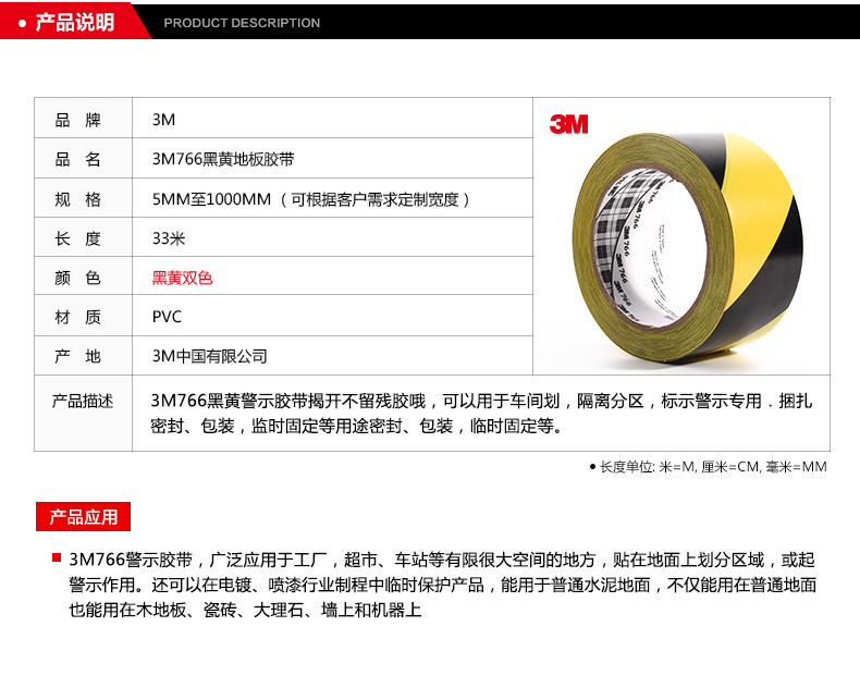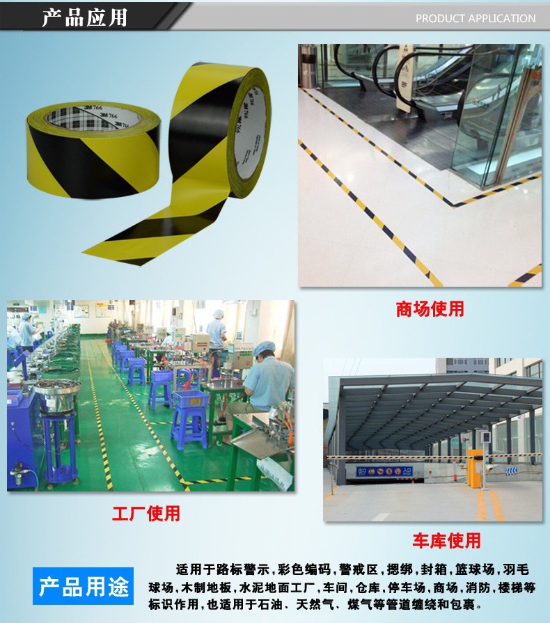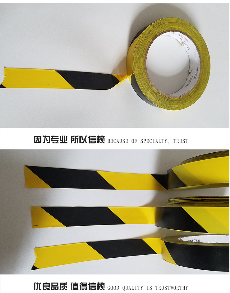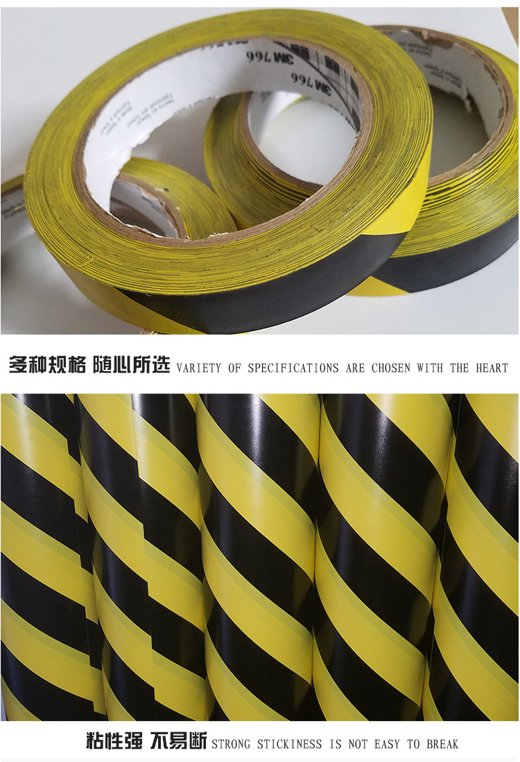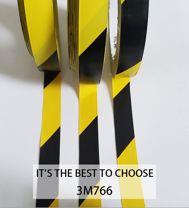 3M766黑黄地板胶 PVC警戒隔离线 地面划线标识耐磨防水胶带