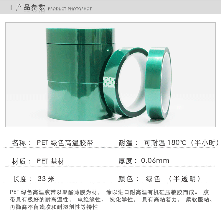 高温贴膜 pet高温胶带,又名防焊喷涂胶带。此产品粘性佳,耐高溫,耐酸碱、耐腐蚀、耐高压、耐溶劑性極佳;特殊粘剂处理,粘着力强,撕去后被遮蔽表面不留残胶。