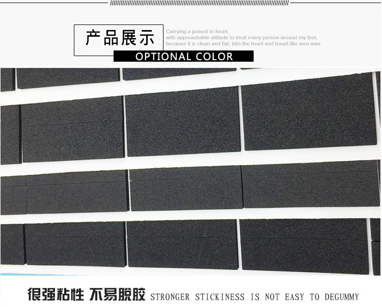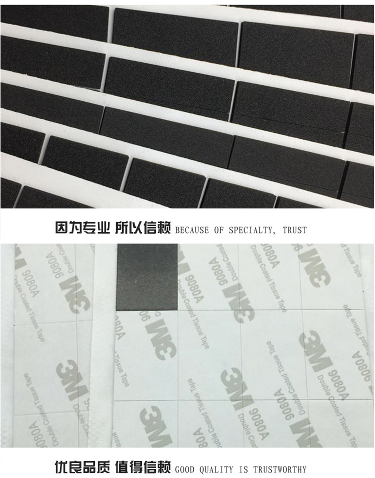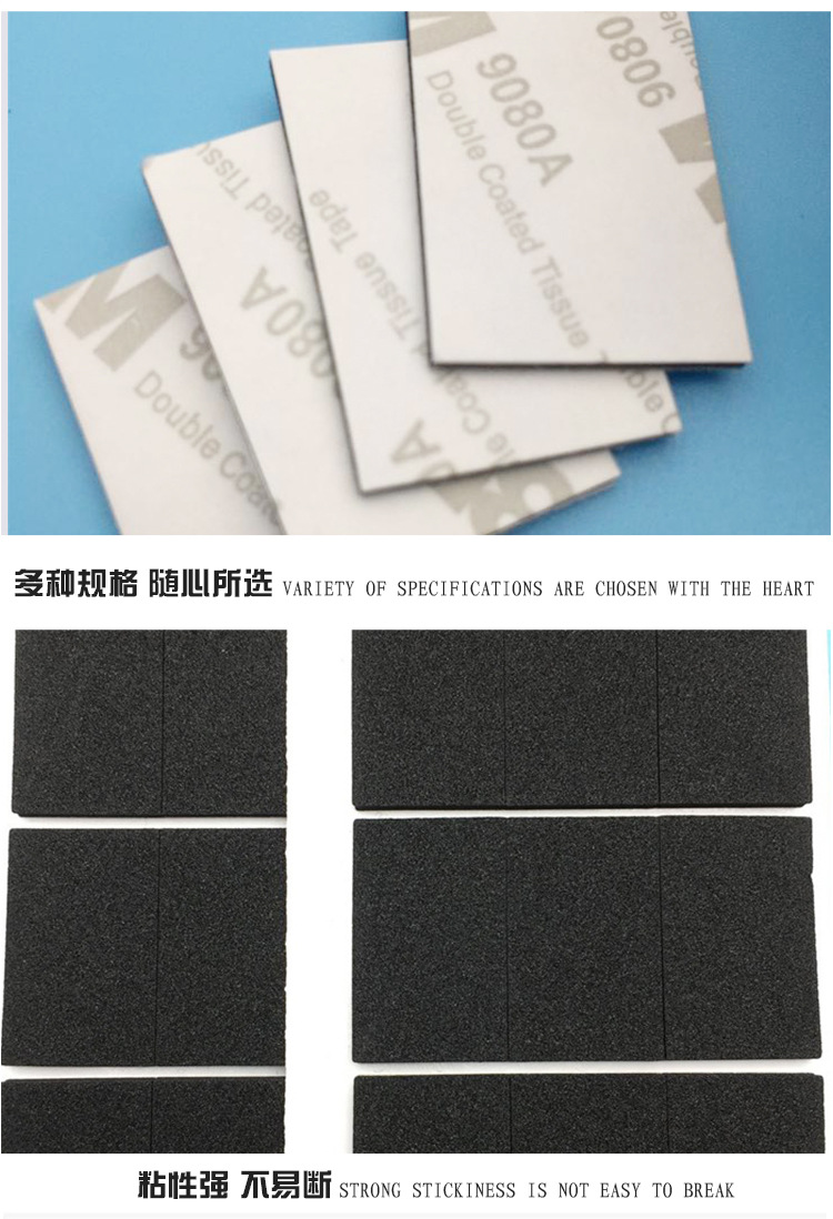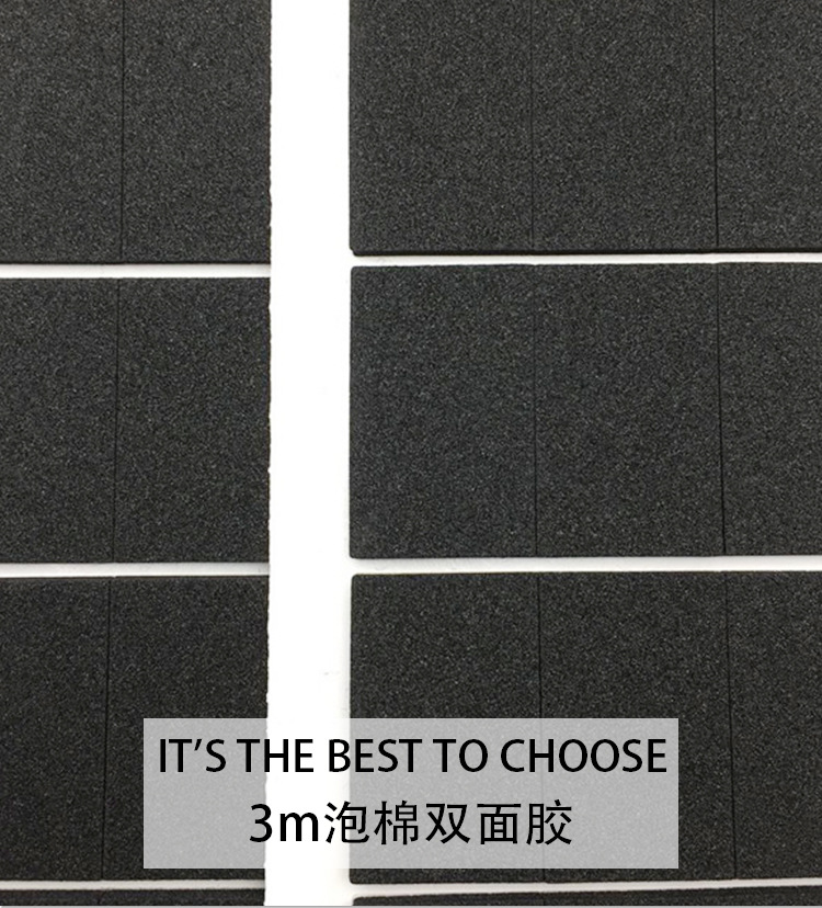 泡棉双面胶是指在发泡泡棉基材两面涂上强粘丙烯酸胶粘剂,然后一面覆上离型纸或离型膜而成的一种双面胶,如果两面都覆上离型纸或离型膜称之为夹心双面胶纸,做成夹心双面胶主要是为了方便双面胶冲型。泡棉双面胶具有粘着力强、保持力佳、防水性能好、耐温性强、防紫外线能力强的特性。发泡泡棉基材分为:EVA泡棉、PE泡棉、PU泡棉、压克力泡棉及高发泡。胶系分为:油胶、热溶胶、橡胶及压克力胶。应用领域1、电子市场:手机、电脑、数码相机、机械面板、薄膜开关等;2、汽车市场:外观装饰条、汽车零部件、汽车车标、汽车香水等;3、家居市场:挂钩、家具、玩具、工艺品、窗户缝隙、门缝隙粘贴等。产品分类PE泡棉双面胶PE泡棉双面胶是指在PE发泡的基材上两面涂上压克力胶水而成的双面胶。颜色主要有白色、黑色及灰色,常用厚度有0.3mm、0.5mm、0.8mm、1.0mm、1.5mm、2.0mm及3.0mm,泡棉发泡倍数有5倍、8倍、10倍、15倍、20倍及30倍,离型主要为离型纸(白色、黄色)及离型膜(红色、绿色、蓝色、橙色),用途:适用于相框装饰条、家具饰条、汽车饰条、浪板、轮弧、挡流、板刹车灯、汽车车标、摩托车标牌、电器铭牌、毛条等方面的粘贴固定作用,特点:粘着力强、保持力佳、防紫外线、耐温性、耐水性、耐溶性及可抗塑性。适用温度:-20℃~120℃。EVA泡棉双面胶EVA泡棉双面胶是指在EVA发泡的基材上两面涂上胶粘剂而成的双面胶。胶粘剂有油胶、热溶胶及橡胶胶水,颜色比较丰富,有白色、灰色、黑色及其它彩色,具有良好的防震缓冲性能、密闭泡孔、隔音效果好、隔热、防潮、抗化学腐蚀等优点且符合环保要求,可适用于各种电子产品、电器、汽车、通讯、电脑、玩具、家用挂钩、体育器材、塑胶、五金等各行业为辅助材料使用,常用密度:38度-48度,特殊密度:50度-80度,常用厚度:0.5mm-50mm,一般都采用白色或黄色离型纸,适用温度:20℃-60℃。