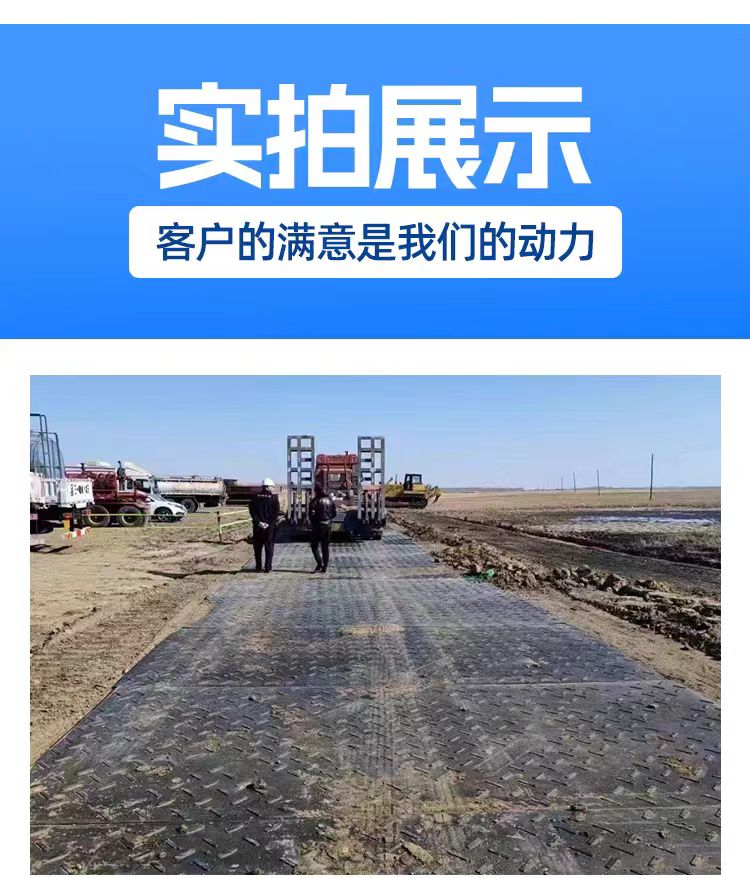 搞工程的都知道路基板铺路垫板很重要,选错了那就是给自己找麻烦,选对了就像是给工程铺了条康庄大道,聚铺路板具有重量轻、承重高、耐磨损、抗冲击、韧性好的优异性能可以为车辆和设备工作时分散重力提供安全坚固的施工,减少侧滑、保证施工安全。聚铺路垫板适用于施工短期和长期项目施工场地的临时道路面,特别是在土地软化、崎岖、潮湿泥泞的路面。