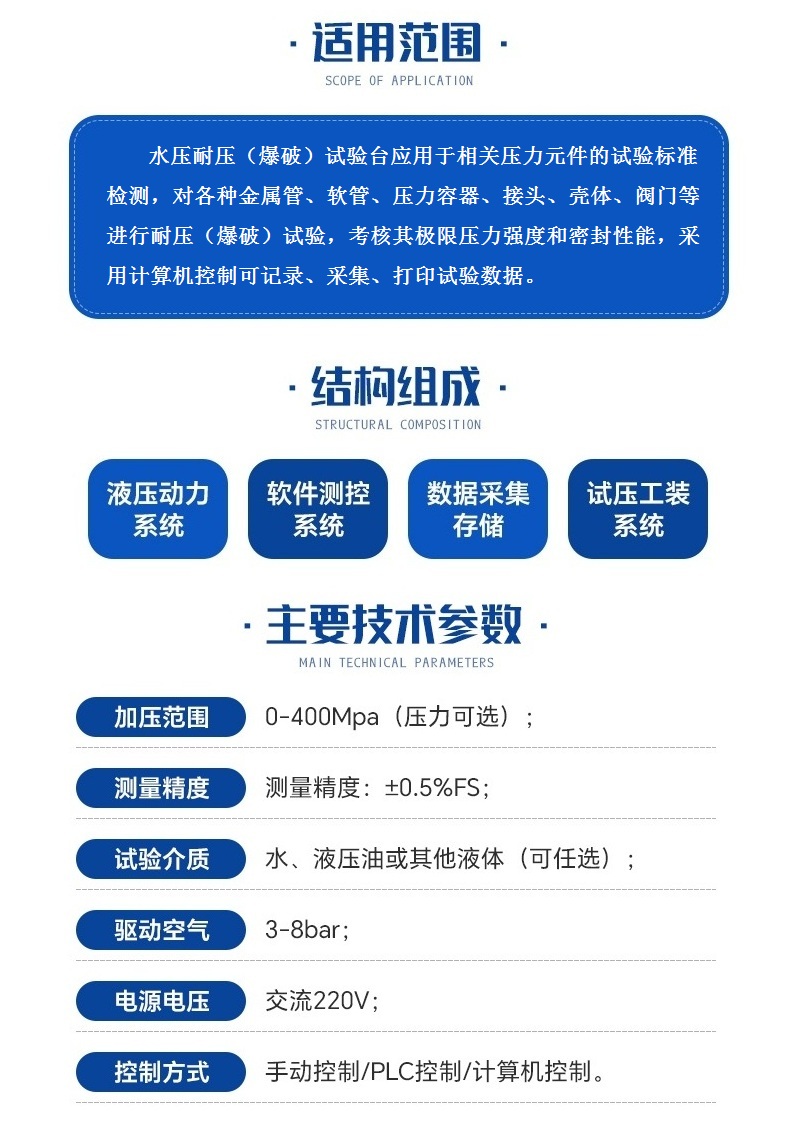 1、加压范围:0-400Mpa(压力可选)