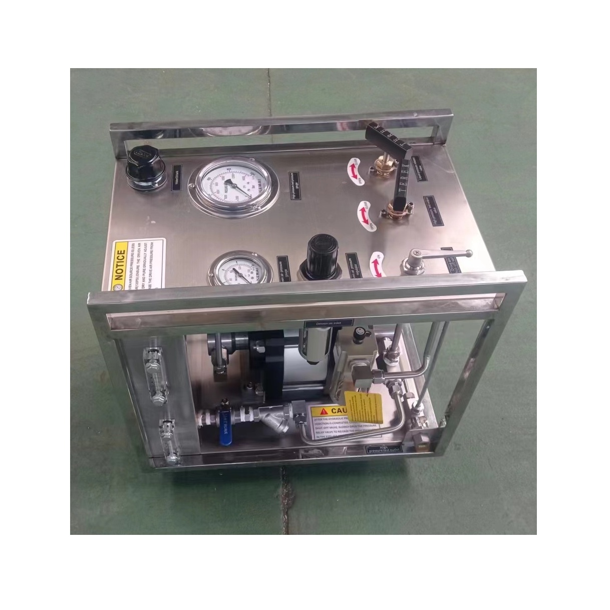 水压爆破(耐压)试验台是我公司根据气动增压装置的工作原理,结合我国的实际情况研制而成的一种试压装置,该试验台用于对各种组件进行静态压力和爆破压力试验。