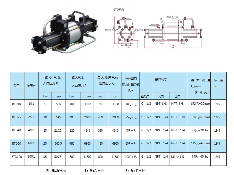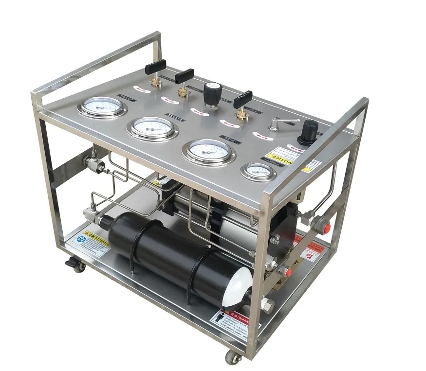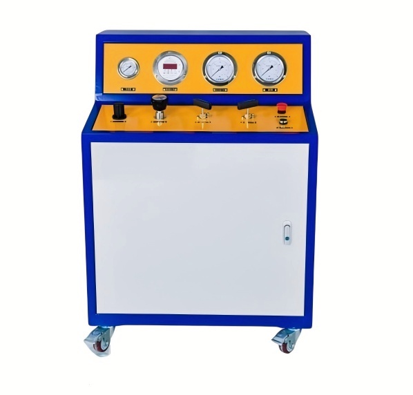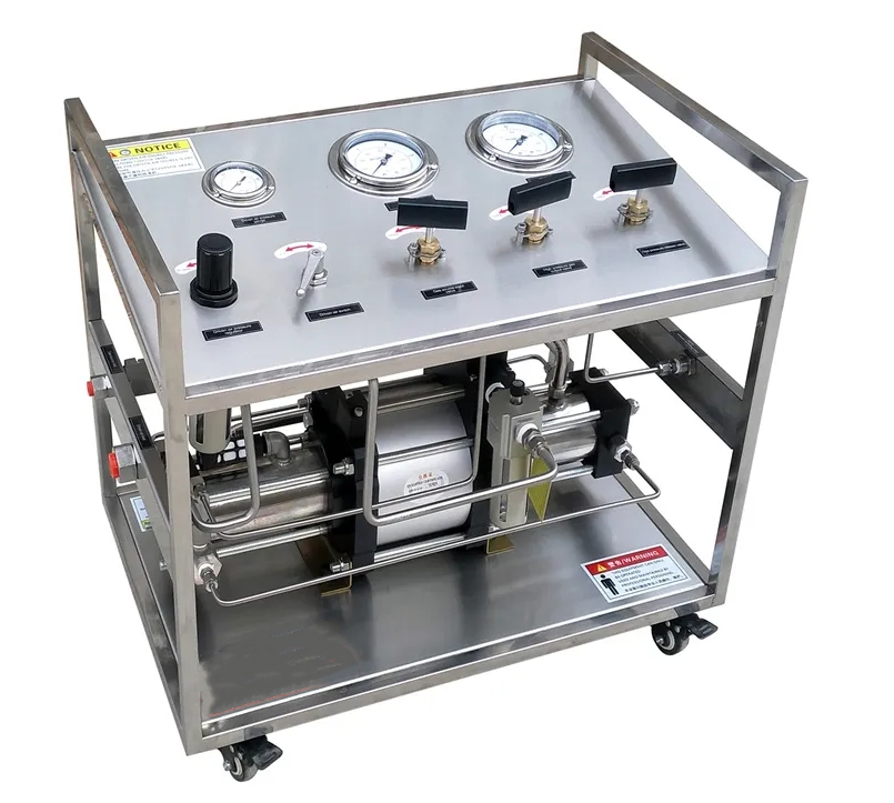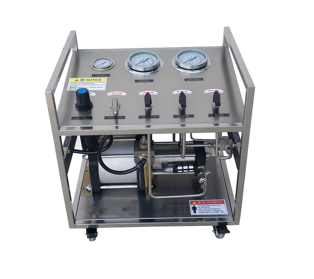 将低压气体增压,实现高压气体输出。驱动气体≤8bar,可增至0-160Mpa。整台气体增压泵全部采用铝合金及不锈钢制造。该系列泵的驱动活塞直径为160mm,两端泵头均带有排气冷却。比较适合用于高压力、小流量的场合,如气密性试验、高压反应釜充气、汽车制动系统测试、高压气体输助注塑等场合。