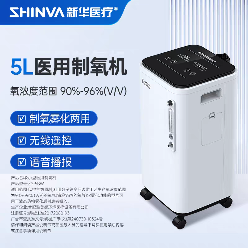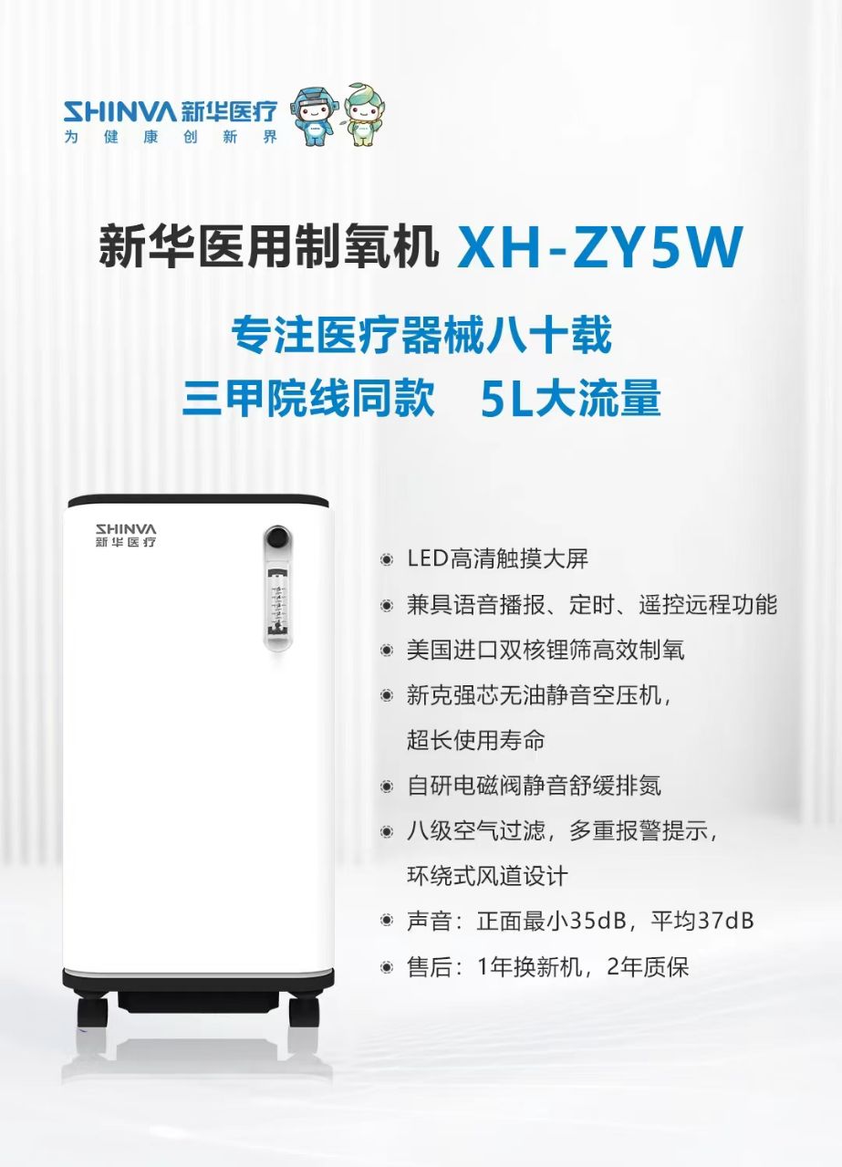 新华XH-ZY5W 5升制氧机,是国企新华医疗研发的一款高效制氧机