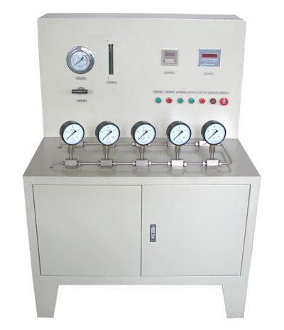 压力表试验台由低压动力泵、高压增压器以及电路控制系统组成。 可以完成压力表的疲劳试验,与基准表相对比,测试压力表稳定性与准确性,可以自行设定试验压力与试验次数、试验频率,达到试验次数,自动停机并报警的功能。