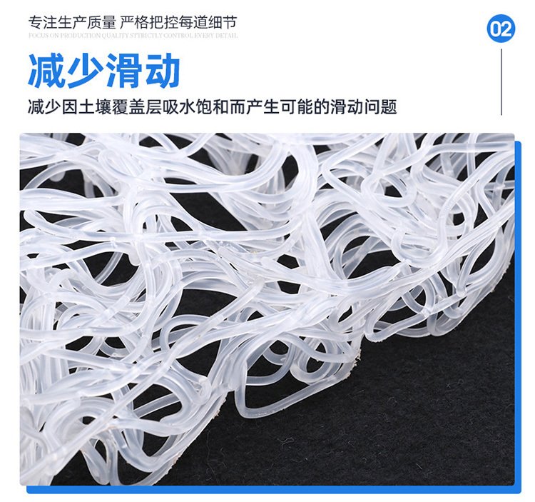 土工席垫是一种以乱丝熔融铺网而成的新型土工合成材料,它耐压高、开孔密度大,具有集水、水平排水功能。组成结构是一个立体的土工网芯,两面都配有针刺穿孔无纺土工织物。立体土工网芯能够迅速地排出地下水,自身还有一个孔隙维护系统,能在高荷载下阻断毛细水。同时,它还能起到隔离加固作用。
