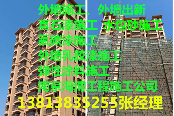 承接:外墙乳胶漆施工、弹性涂料施工、质感涂料施工,真石漆施工,金属氟碳漆施工,外墙涂料出新,内外墙乳胶漆施工工程。外墙粉刷出新工程, 我公司南京工程业绩显著,施工质量,价格优。真诚与您合作,欢迎来电。