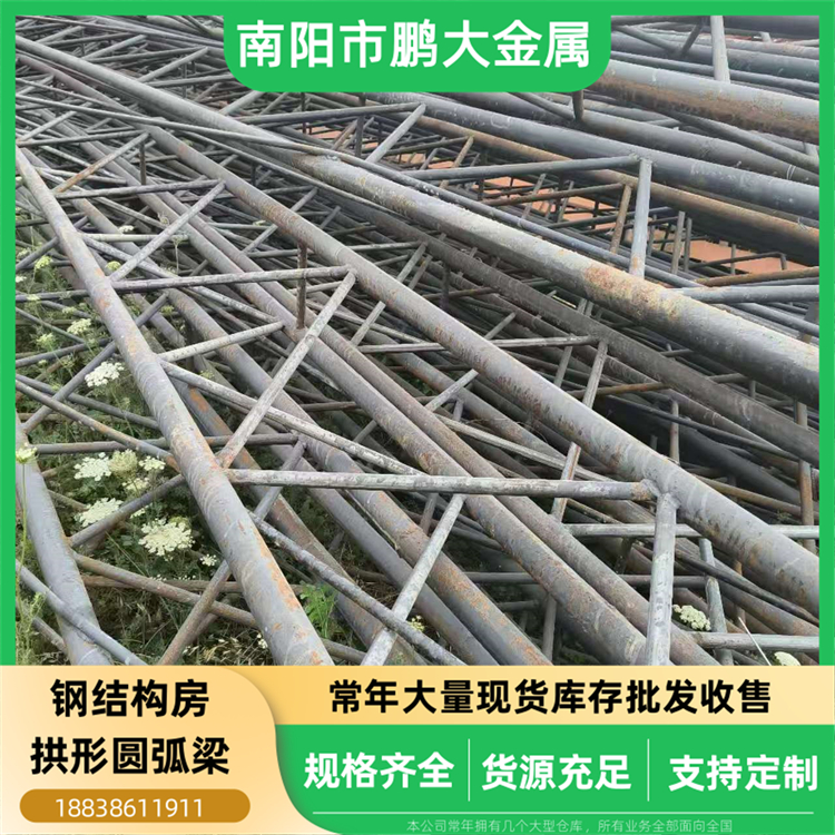 钢材部常年大量批发出售二手再用钢结构房拱形圆弧梁,几千架库存确保供应不间断。规格涵盖各种跨度和曲率,能满足不同建筑设计的需求,无论是农业大棚、工业厂房还是商业展厅,都能找到合适的圆弧梁。作为再用产品,价格极具竞争力,性价比远超全新材料,且所有均在货场分类存放,方便客户现场挑选,下单后迅速安排配送,高效助力工程建设。