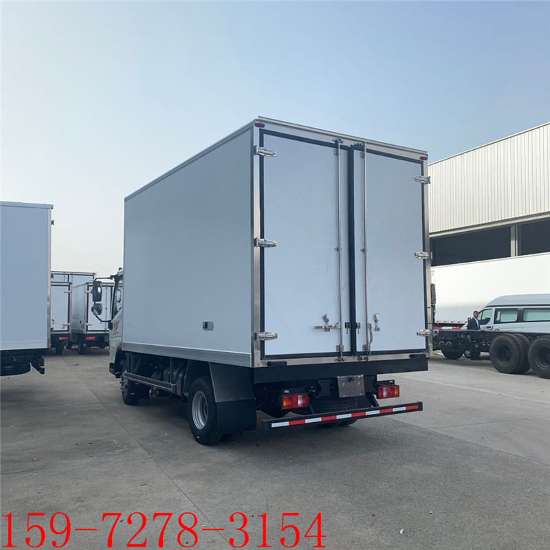 选装单排驾驶室,对应货厢栏板内尺寸长可选3600mm、4000mm和4100mm;选装排半驾驶室, 对应货厢栏板内尺寸长可选3250mm、3700mm和3800mm。选装同等功率的制冷机组,选装后视镜,选装导流罩, 选装货厢整体式后尾灯支架,选装侧防护结构,选装货箱外观结构,选装前面罩,选装起重尾板,选装油箱。车厢顶部封闭, 不可开启。车长、轴距和前后悬的关系为:5580=1160+2800+1620;5995=1160+3280+1555;5995=1160+3360+1475;5995=1180+3280+1535; 5995=1180+3360+1455。驾驶室准乘人数与额定载质量参数一一对应。侧面防护装置所用材料材质为Q235A, 连接方式为螺栓连接;当不装起重尾板时,后部防护装置所用材料材质为Q235A,连接方式为螺栓连接,断面尺寸为 100mm×50mm,离地高度为400,410,420,430,440,450,460,465,470,480,490mm;当装起重尾板时, 后部防护装置所用材料材质为Q235A,连接方式为螺栓连接,断面尺寸为Ф120mm,离地高度为400,410,420,430,440,450,460,470,480,490mm。ABS系统型号为XH-KQ4S4M-E01, 生产企业为广州市西合汽车电子装备有限公司;型号为CM4XL-4S/4M,生产企业为广州瑞立科密汽车电子股份有限公司; 型号为VIE ABS-Ⅱ,生产企业为浙江万安科技股份有限公司。发动机D25TCIF1对应的油耗申报值10.6L/100km, 发动机WP2.3NQ130E61对应的油耗申报值11.0L/100km。发动机D30TCIF1对应的油耗申报值10.8L/100km, 发动机NV30-C6B对应的油耗申报值11.2L/100km,发动机WP3NQ160E61对应的油耗申报值11.2L/100km, 发动机F2.8NS6B156对应的油耗申报值11.2L/100km。发动机D40TCIF1对应的油耗申报值11.0L/100km, 发动机CY4SK661对应的油耗申报值11.3L/100km,发动机WP4.1NQ190E61对应的油耗申报值11.3L/100km, 发动机F3.8NS6B190对应的油耗申报值11.3L/100km。起重尾板收起状态的水平距离280mm,起重尾板质量350kg。