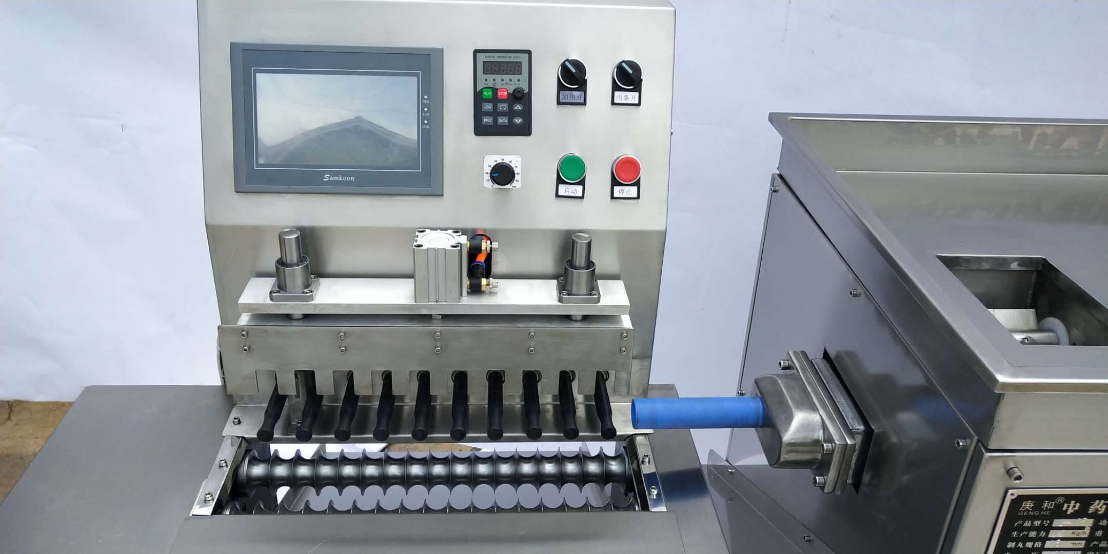 本系列全自动制丸机是中成药蜜丸生产的旋转备。本机集光电一机械于一体,实现了蜜丸生产自动化、科学化。本机是:制丸克重差异满足规范:成品与药头自动分流不筛选:接触药物的部位和整体封闭的材料为不锈钢:整体造型美观、易清洁、易维修、操作方便。