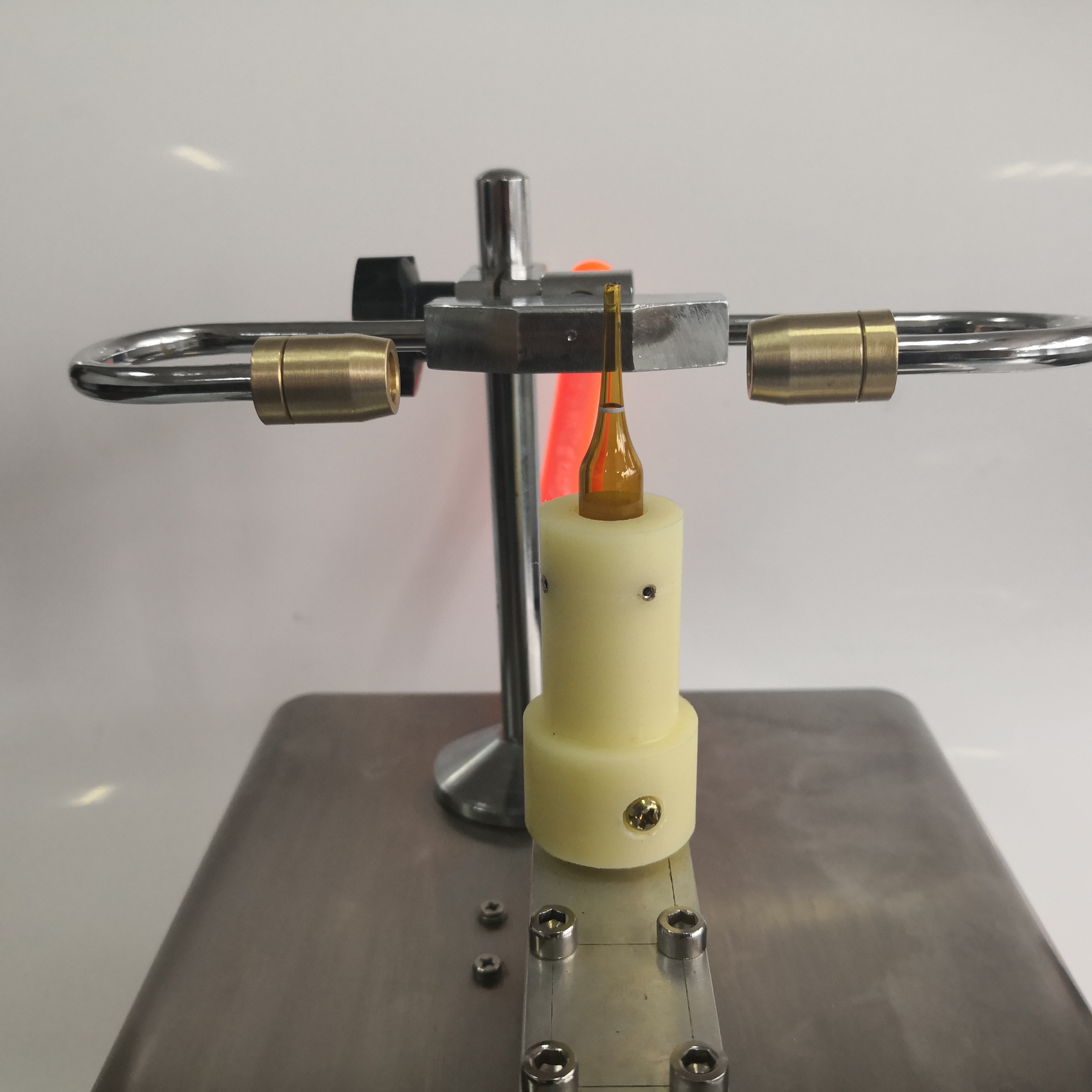 该机主要用于安瓿瓶、管制瓶等玻璃制品的热熔封口,适用于学校教学、实验室研发、小批量试制封口, 广泛应用于制药、化工、环保、生物、美容等行业,该机以石油液化气(煤气)、天然气为起源,自带产空气装置, 使火焰集中喷射,达到封口目的。