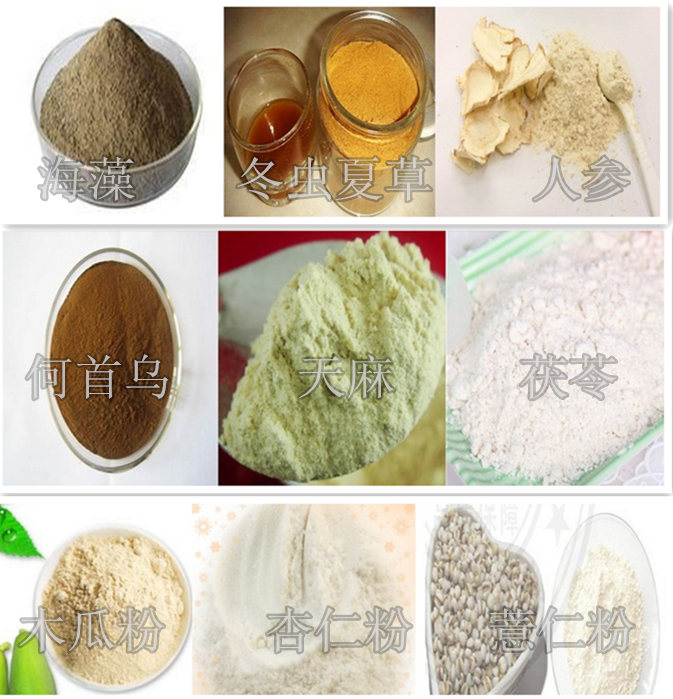 本机适用于医药、食品、化工、冶金、地质、农业、科研、学校等单位,尤其适用于实验室对少量贵重药材及中草药的粉碎加工。中药粉碎机属连续投料式粉碎,产量从几斤到二十几斤不等(视物料情况而定),所以非常适合中试、小规模生产的用户,可广泛用于中药、食品、饲料、化工、农业、科研院所、大专院校等行业,以及药店、药房、门诊部等用户使用。本机可以粉碎中草药(党参、白芨、木通、乳香、黄芪、三七、菟丝子、灵芝、甘草、山楂、珍珠等)、植物根、茎、叶、花、果,树皮、麦麸、磨芋、玄麻、玉米芯、粮食、虾皮、海藻、脱水蔬菜、干姜、蒜片、调料、塑料、化工原料、云母、石墨、膨润土、珍珠岩、酒糟、饼类、木炭、活性碳、纤维素、薯渣、茶叶、豆粕、牛皮、羊皮、果壳等。(注:易燃易爆物,湿性物料不能