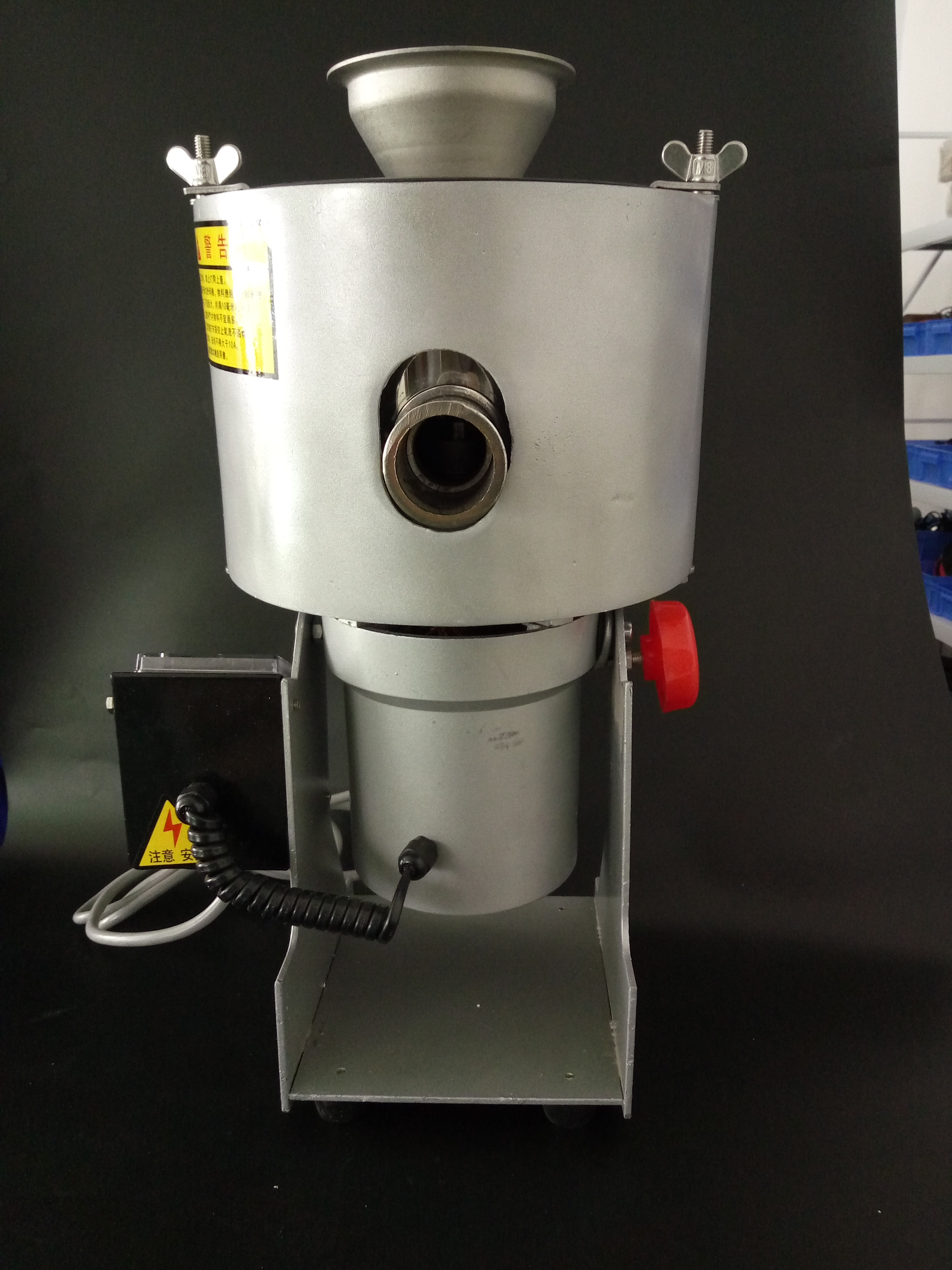 9、本机器是小型粉碎机,流水粉碎机,研磨机三机为一体之功能。 具有体积小,重量轻,性能稳定,操作方便,造型美观,低损耗(损耗件只是刀片)