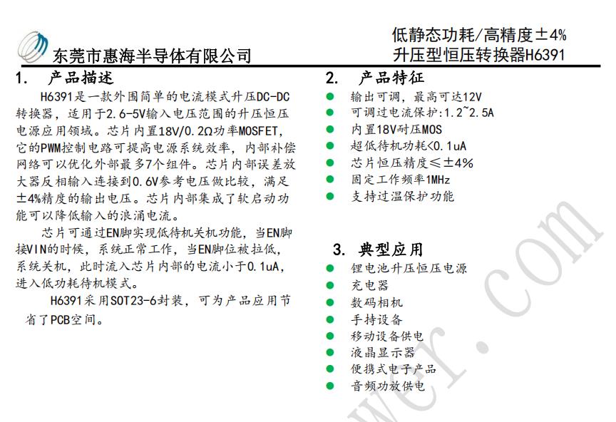 东莞市惠海半导体有限公司(hxc-power),注册资金1000万,总部位于东莞南城CBD,东莞大道旁,蛤地地铁站出口,毗邻京港澳高速出口,交通极为便利,现有管理人员及技术人员60多人,自购1200平方的写字楼办公室。公司拥有十多项发明及新型实用专利,已经获得科技型中小企业和ISO9001质量管理体系认证,并获得广东省守合同重信用企业等荣誉,专精特新也在筹备申请中。