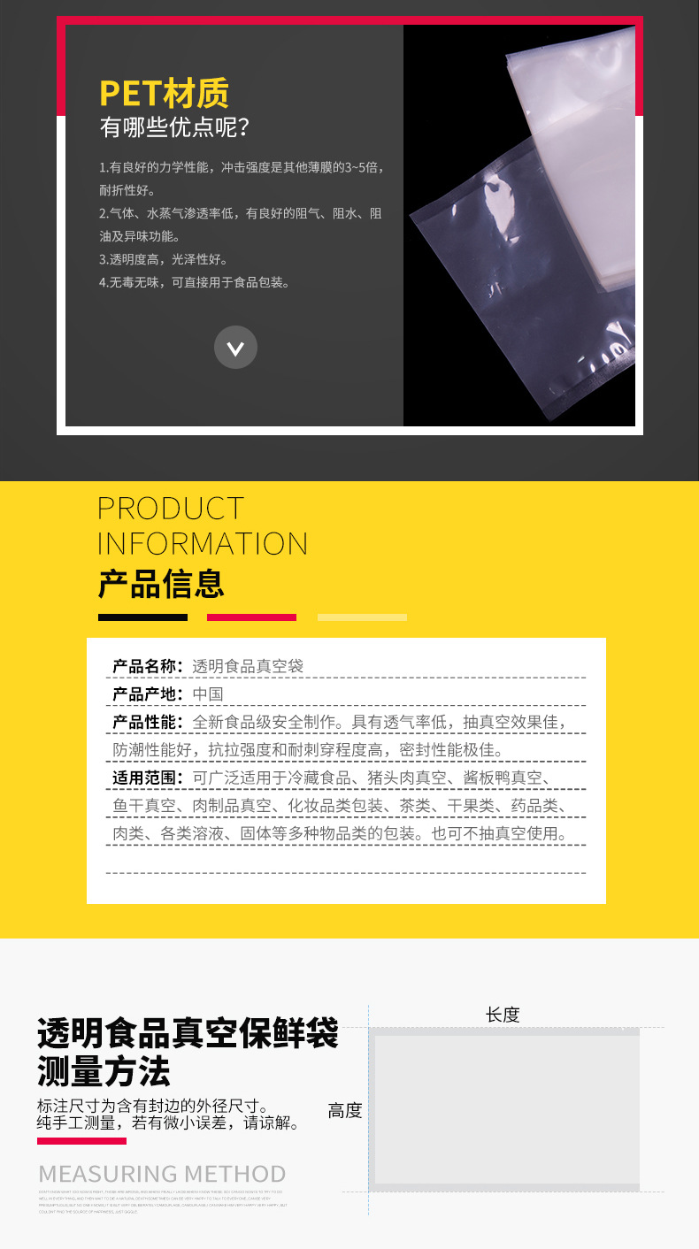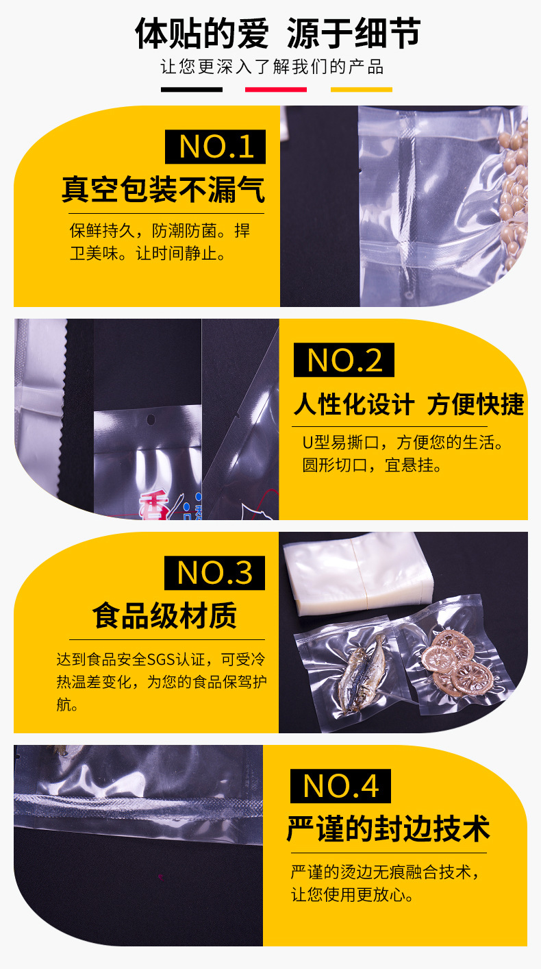 真空袋的主要作用是除氧,以有利于防止食品变质,其原理也比较简单,因食品霉腐变质主要由微生物的活动造成,而大多数微生物(如霉菌和酵母菌)的生存是需要氧气的,而真空包装就是运用这个原理,把包装袋内和食品细胞内的氧气抽掉,使微物物失去“生存的环境”。实验证明:当包装袋内的氧气浓度≤1%时,微生物的生长和繁殖速度就急剧下降,氧气浓度≤0.5%时,大多数微生物将受到抑制而停止繁殖。(注:真空包装不能抑制的繁殖和酶反应引起的食品变质和变色,因此还需与其它辅助方法结合,如冷藏、速冻、脱水、高温杀菌、辐照 灭菌、微波杀菌、盐腌制等。)真空除氧除了抑制微生物的生长和繁殖外,另一个重要功能是防止食品氧化,因油脂类食品中含有大量不饱和脂肪酸,受氧的作用而氧化,使食品变味、变质,此外,氧化还使维生素A和C损失,食品色素中的不稳定物质受氧的作用,使颜色变暗。所以,除氧能有效地防止食品变质,保持其色、香、味及营养价值。