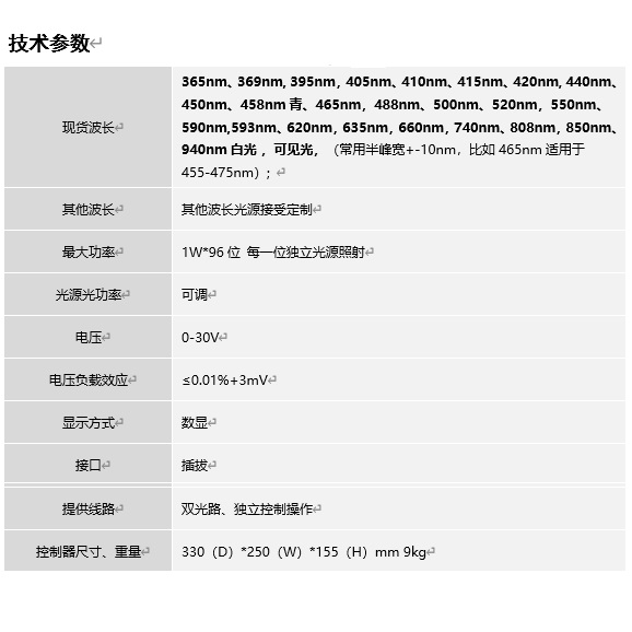 多种波长可选,发光功率可调。