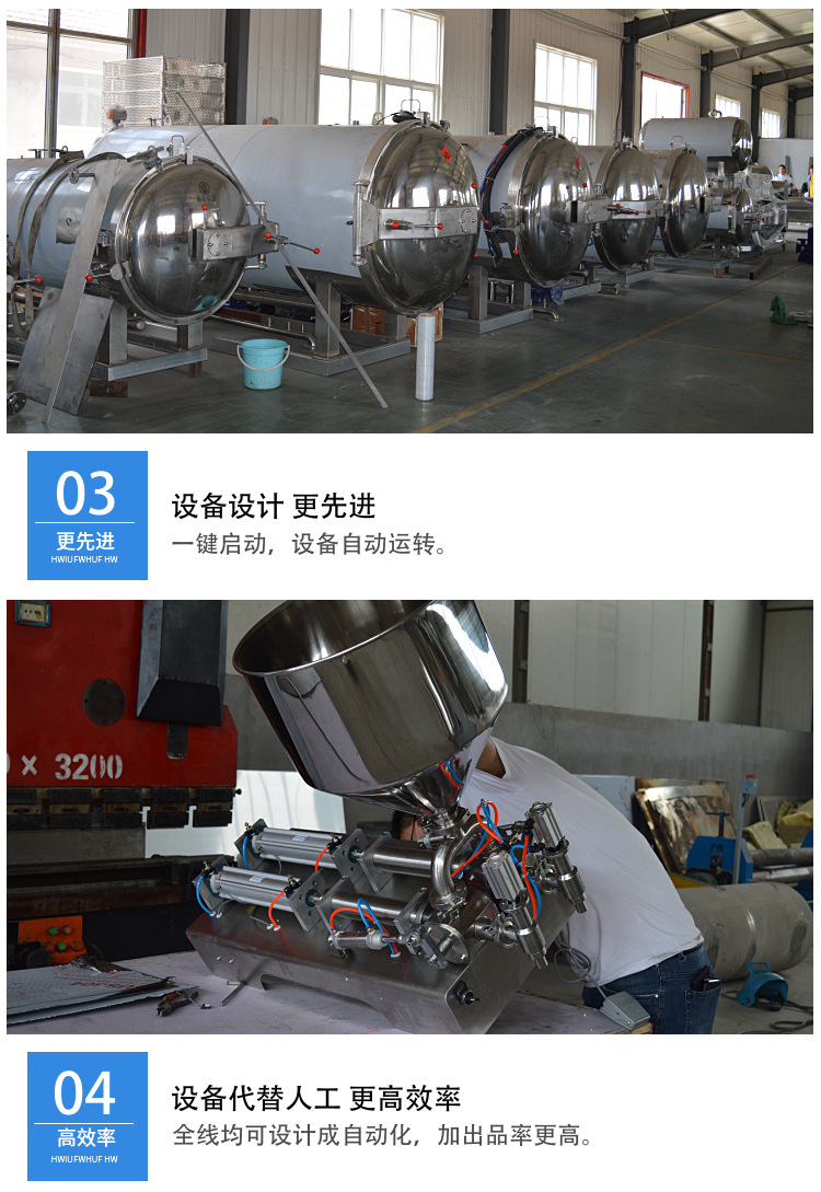 2、自动化程度高,大大提高了劳动效率,用工少,产量大,杜绝了酱料的流失,降低生产成本。