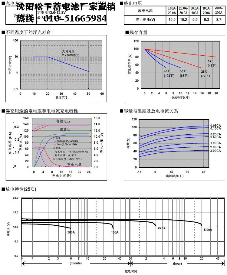 特征:1、安全性能好:正常使用下无电解液漏出,无电池膨胀及破裂。2、放电性能好:放电电压平稳,放电平台平缓。3、耐震动性好:完全充电状态的电池完全固定,以4mm的振幅,16.7Hz的频率震动1小时,无漏液,无电池膨胀及破裂,开路电压正常。4、耐冲击性好:完全充电状态的电池从20cm高处自然落至1cm厚的硬木板上3次。无漏液,无电池膨胀及破裂,开路电压正常。5、耐过放电性好:25摄氏度,完全充电状态的电池进行定电阻放电3星期(电阻值相当于该电池1CA放电要求的电阻),恢复容量在75%以上。6、耐过充电性好:25摄氏度,完全充电状态的电池0.1CA充电48小时,无漏液,无电池膨胀及破裂,开路电压正常,容量维持率在95%以上。7、耐大电流性好:完全充电状态的电池2CA放电5分钟或10CA放电5秒钟。无导电部分熔断,无外观变形。