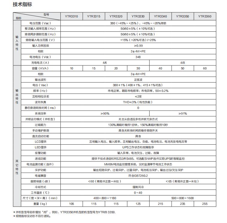科华ups ytr33系列(20--200kva)立式产品参数: