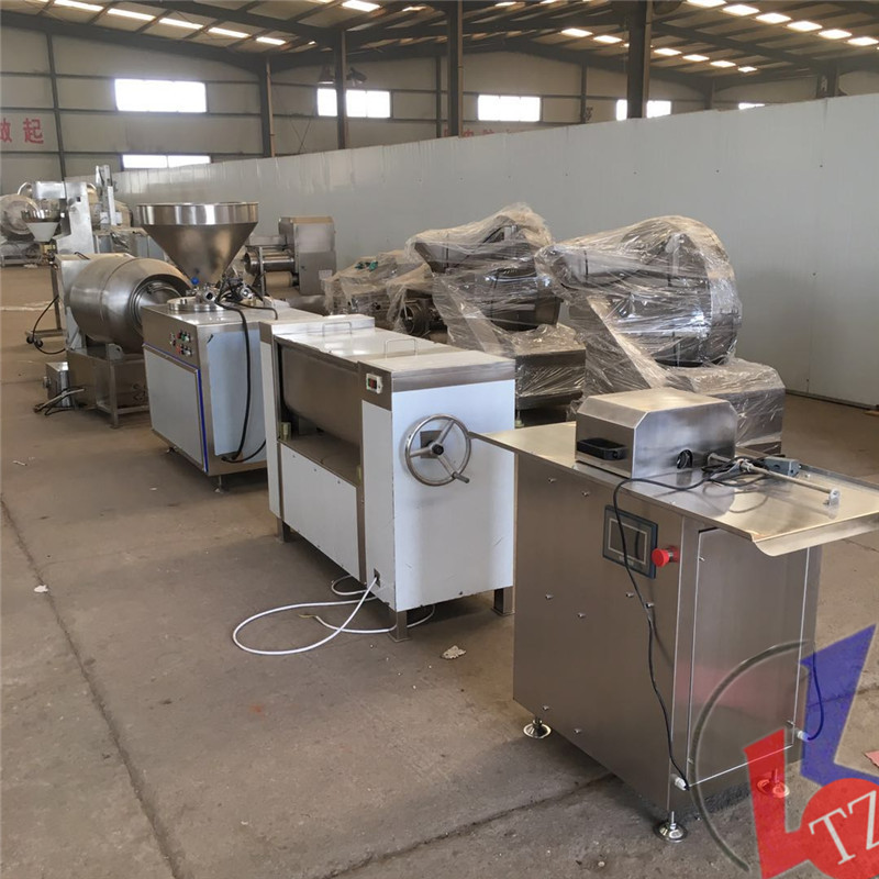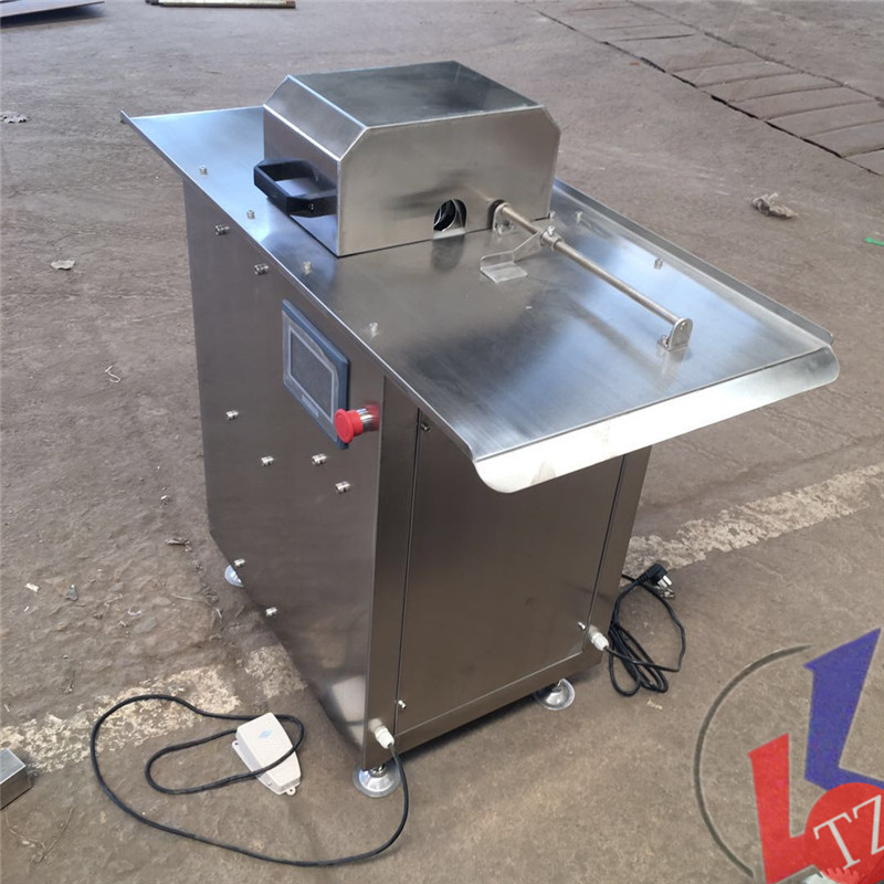 电动单路半自动香肠扎线机,采用食品级优质不锈钢制造,体积小,效率高,易操作。控制系统采用触摸屏和伺服控制系统组成,具有手动和自动连续两种生产模式,在自动连续模式下生产效率更高,省时、省力。直观的触摸屏控制画面,能够设置生产的速度,扎线的圈数,拖肠的时间等参数,还能对生产进行产量统计。具有传统半自动扎线机无可比拟的优点,具有很高的性价比。机械结构采用数控加工,结构紧凑,精度高,具有很好的防水功能,几乎不用维修的结构使您生产无忧,是中小型食品企业的好帮手。